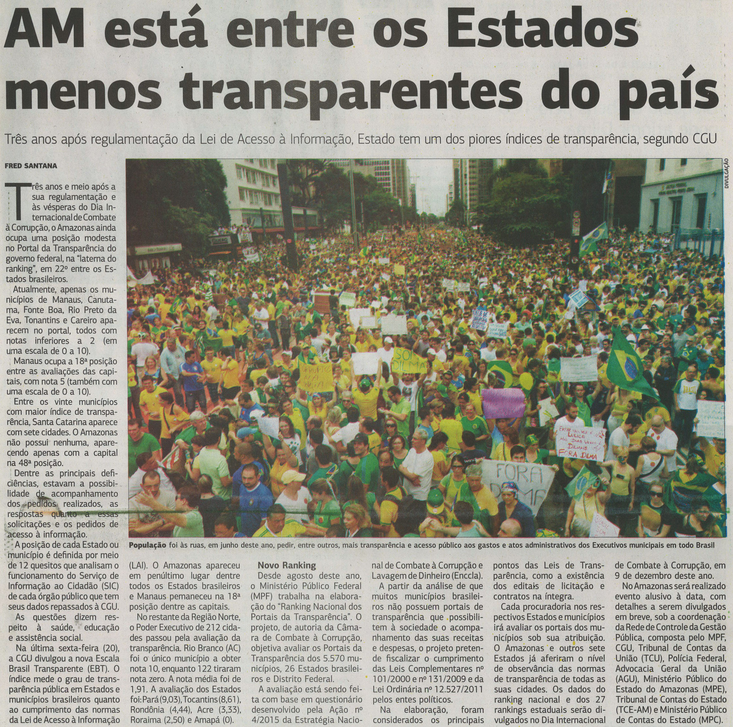 23/11/15 Amazonas em Tempo AM está entre os Estados menos transparentes do país