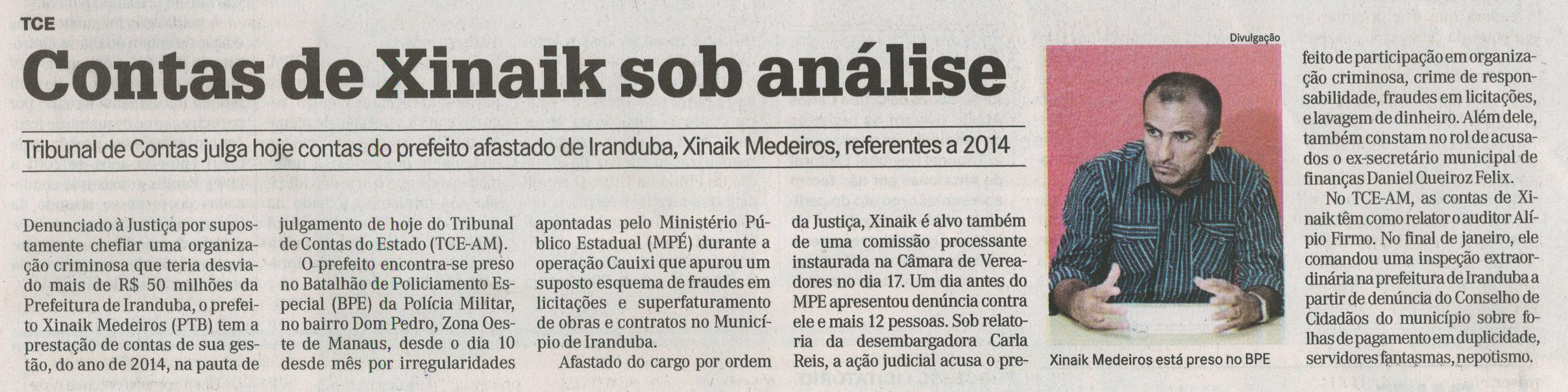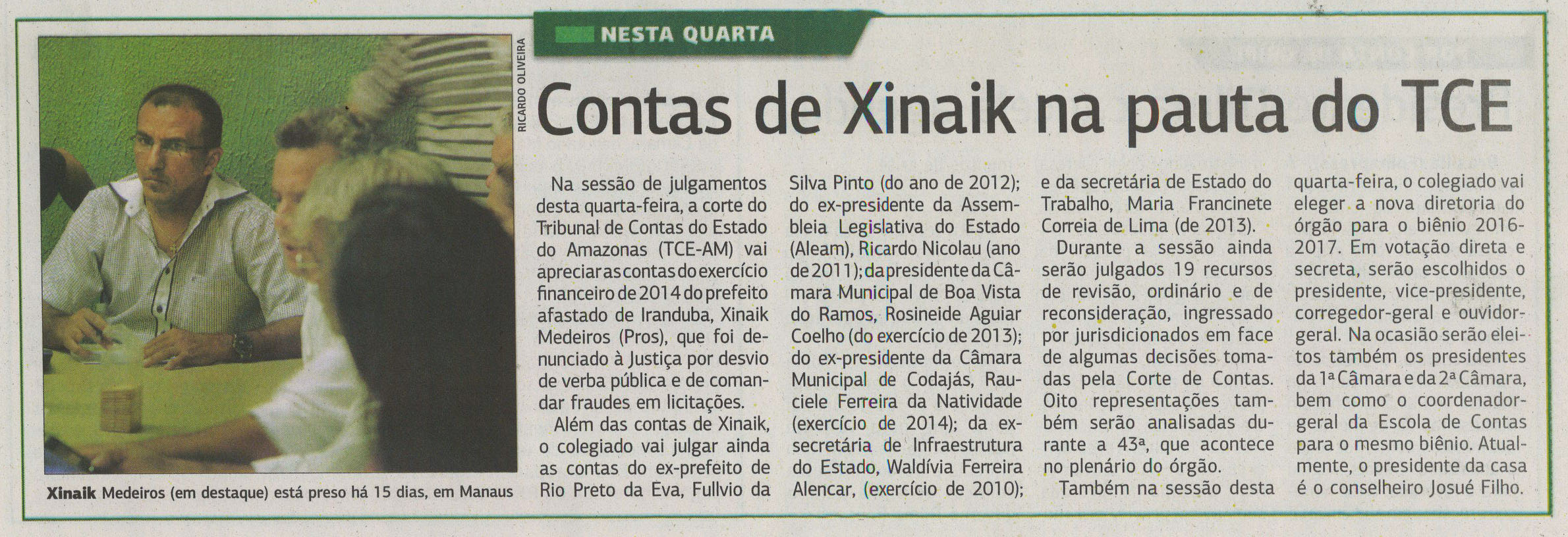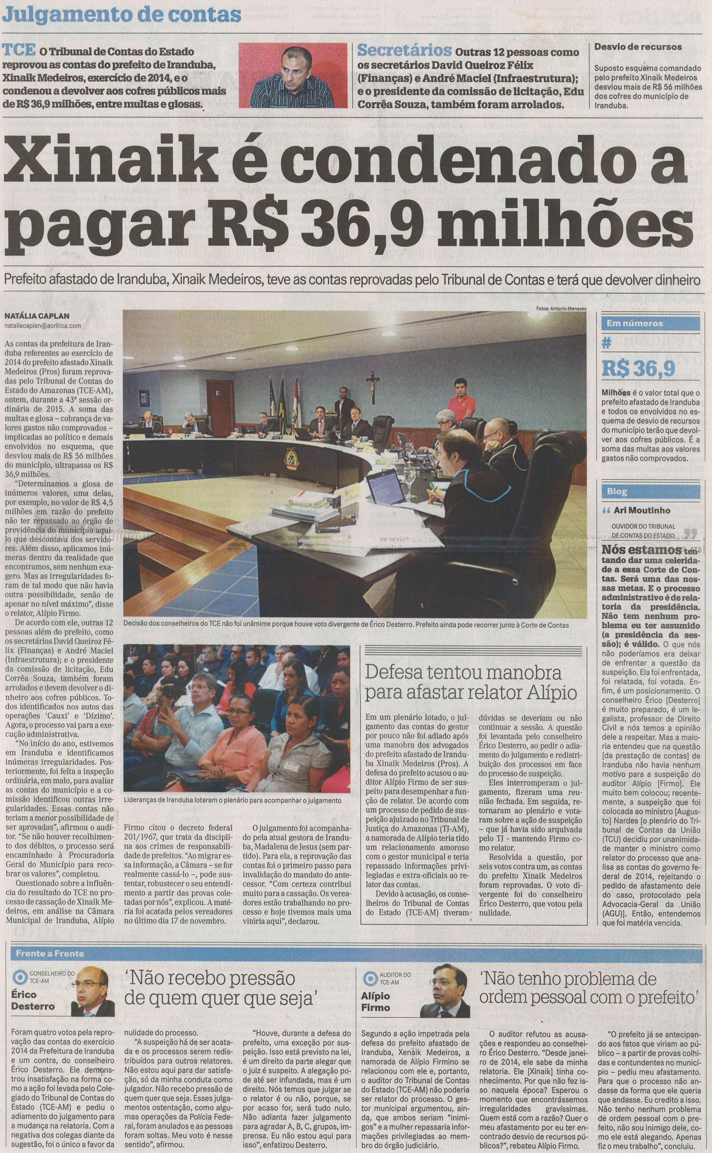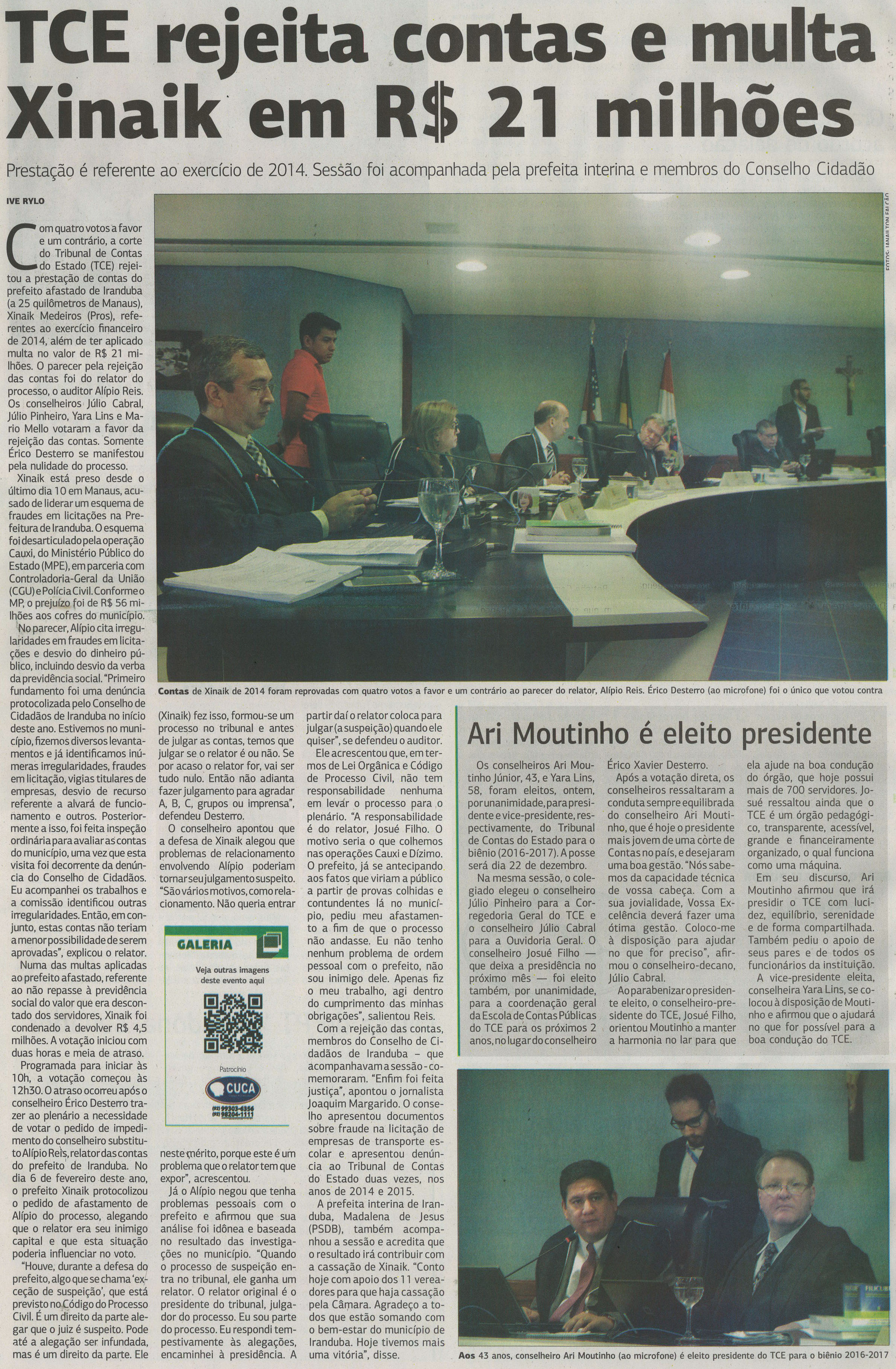 26/11/15 Amazonas em Tempo TCE rejeita contas e multa Xinaik em R$ 21 milhões