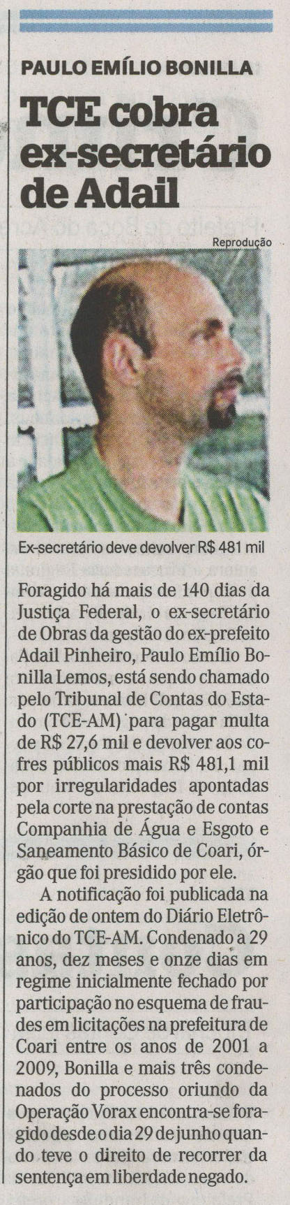 25/11/15 A Crítica TCE cobra ex-secretário de Adail