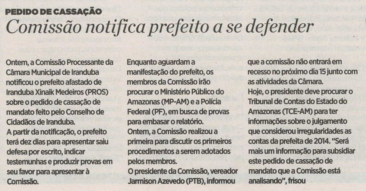 27/11/15 Diário do Amazonas Comissão notifica prefeito a se defender
