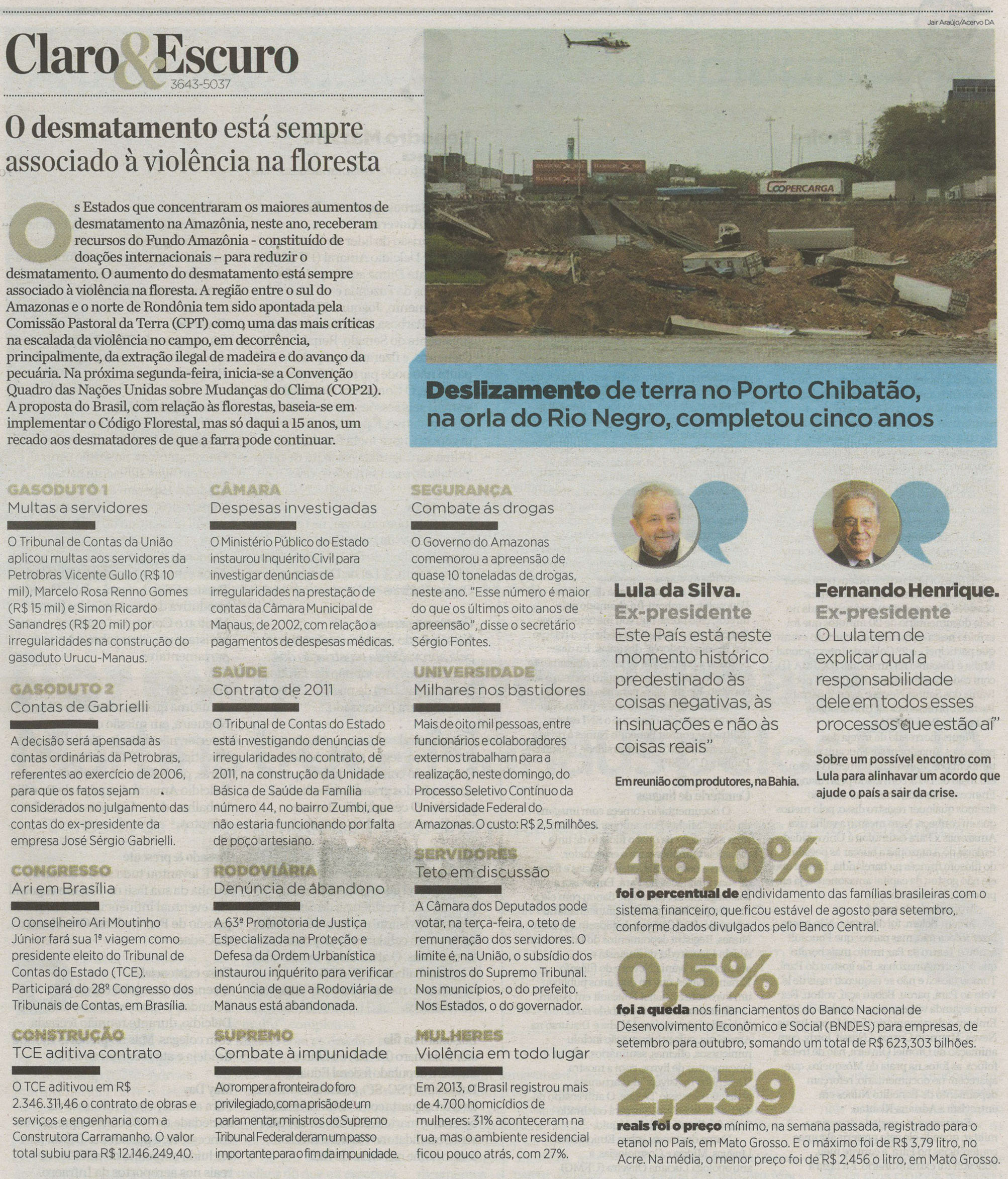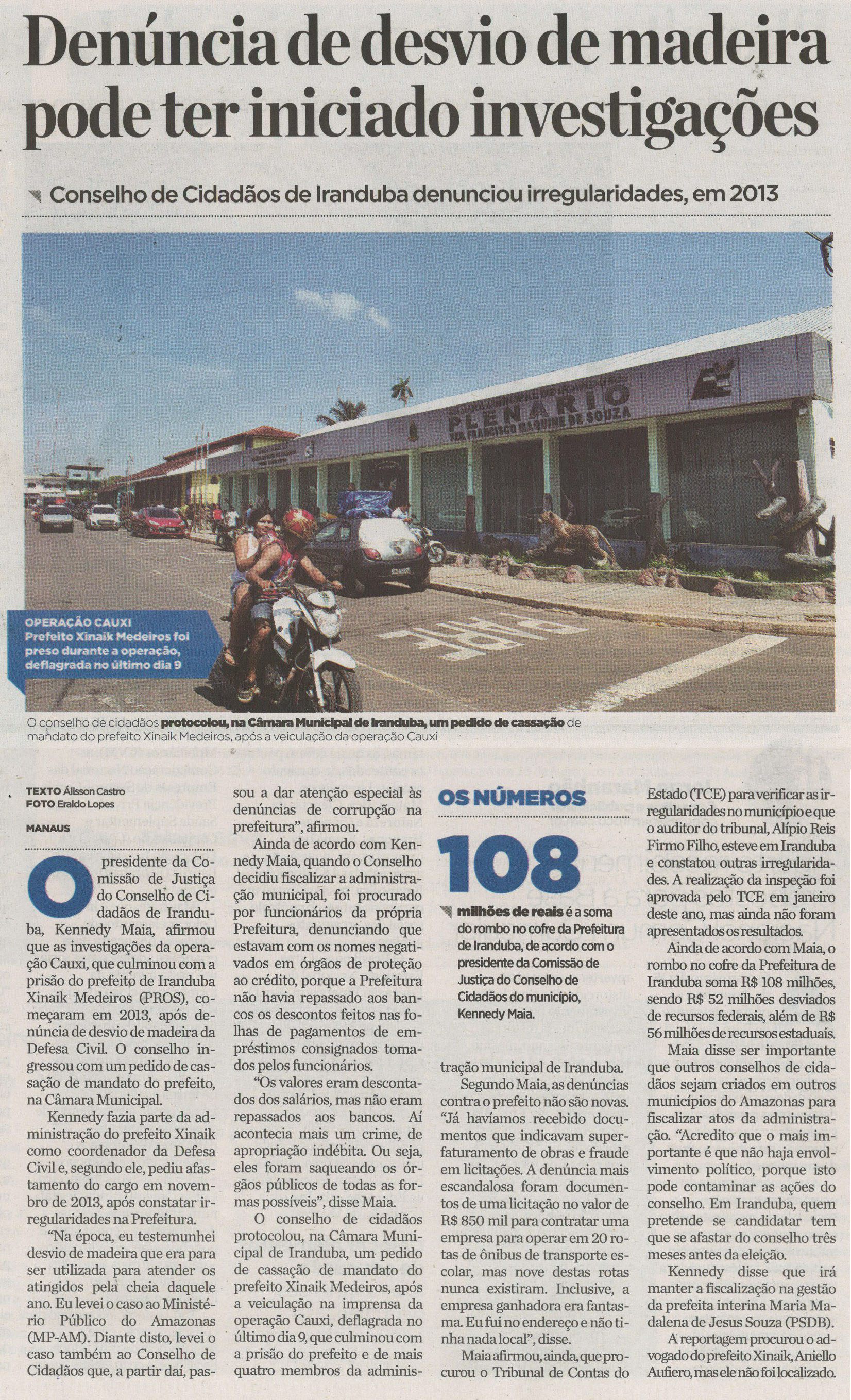30/11/15 Diário do Amazonas Denúncia de desvio de madeira pode ter iniciado investigações