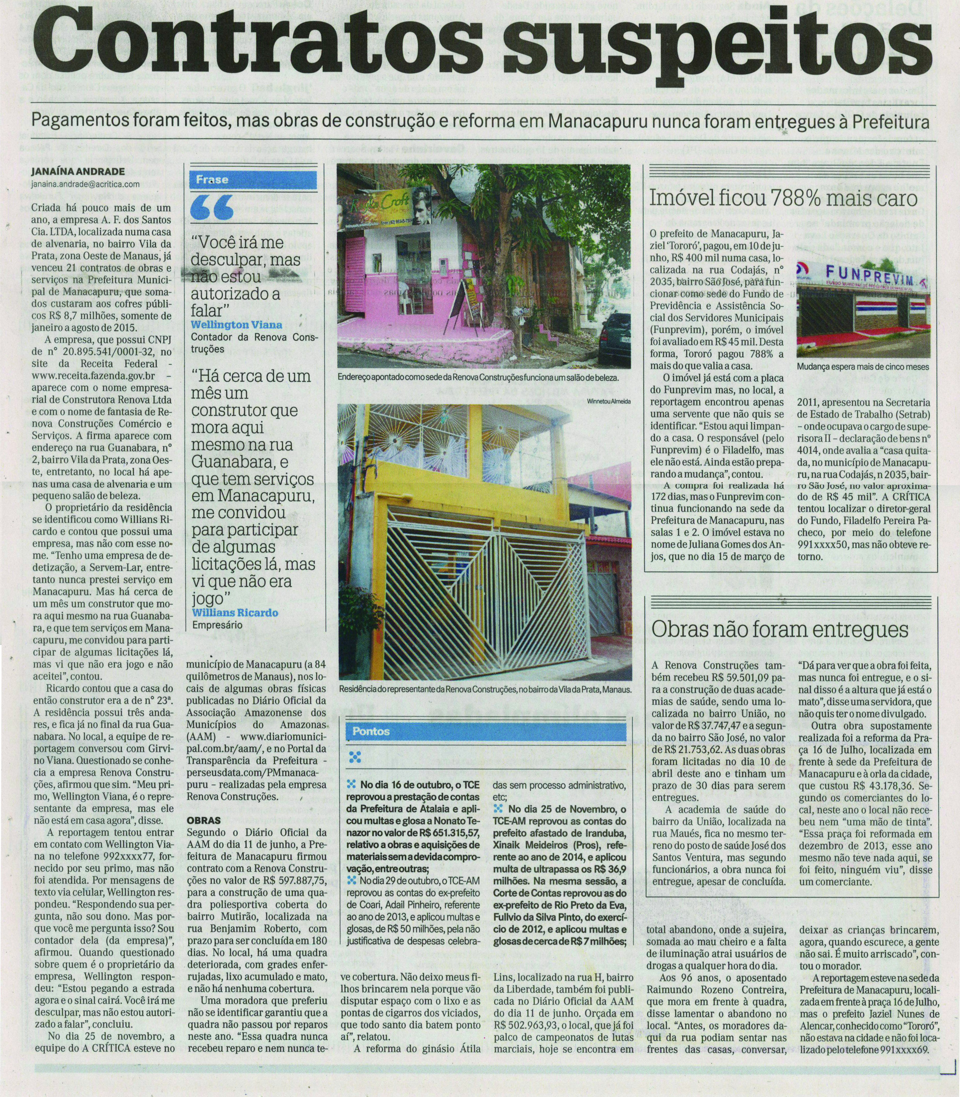 26/11/15 A Crítica MP quer brecar pagamentos de obras