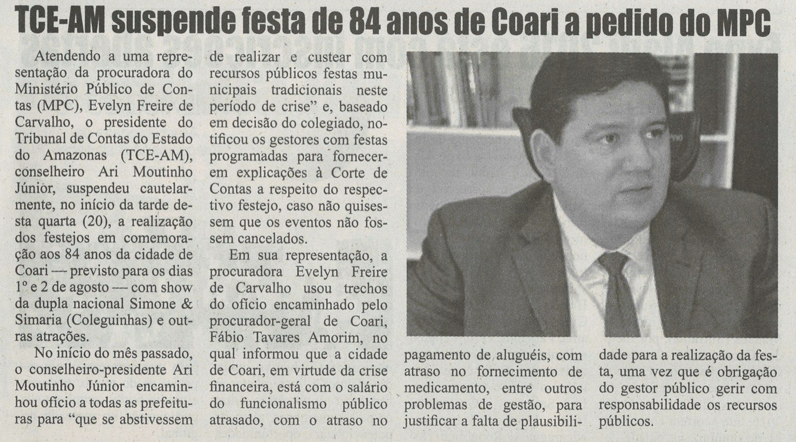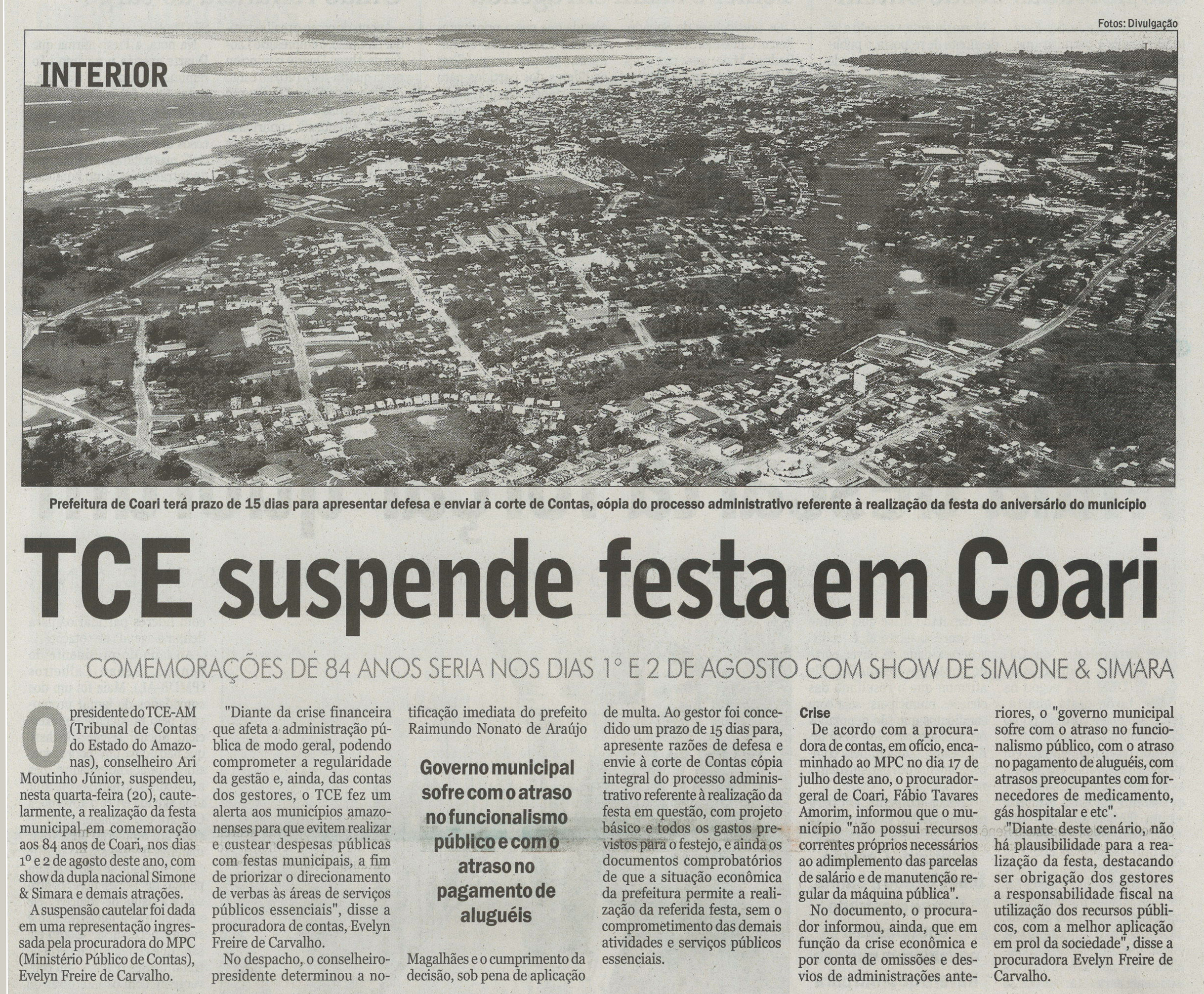 TCE suspende festa de Coari