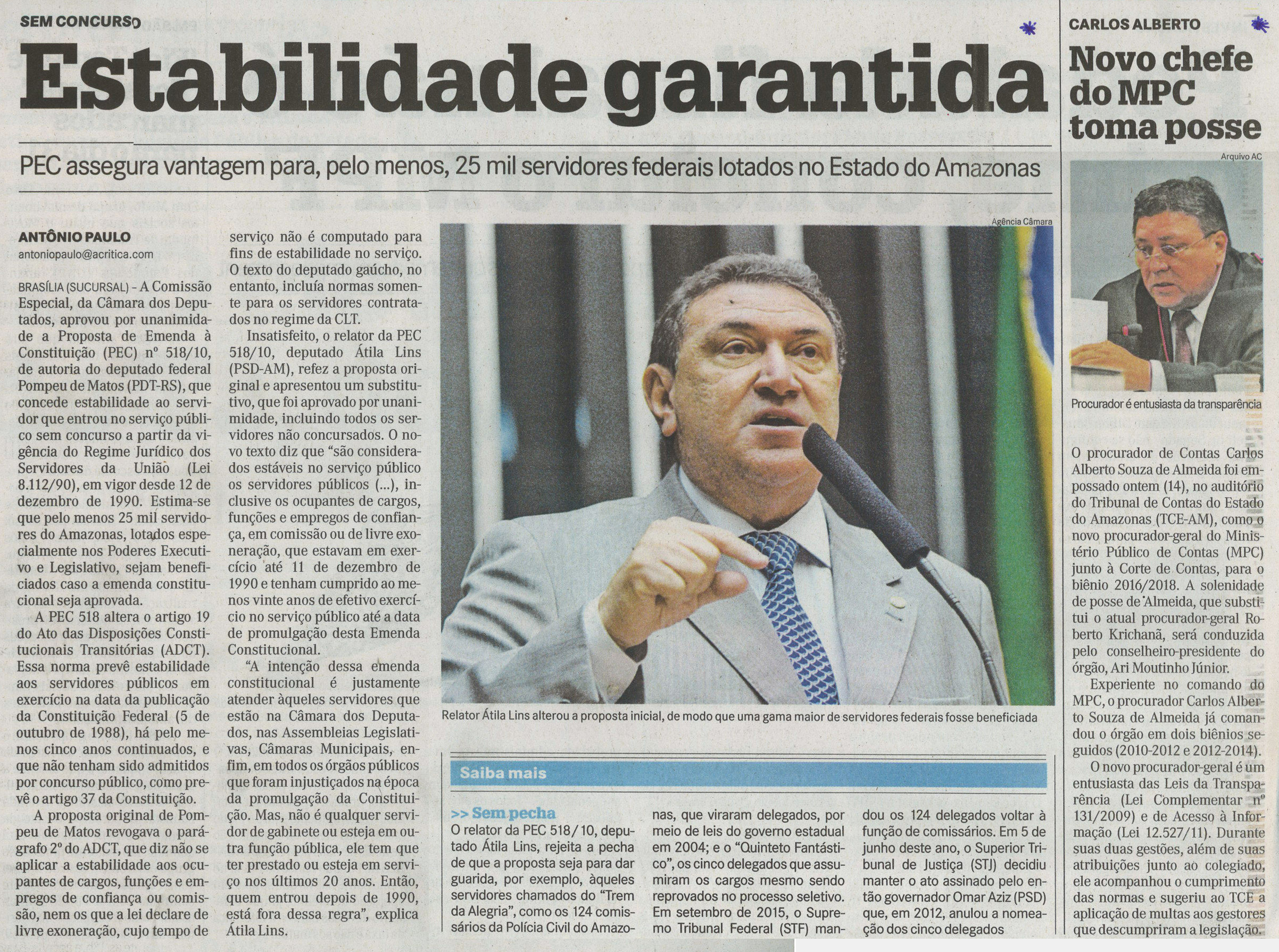 Estabilidade garantida, novo chefe do MPC toma posse