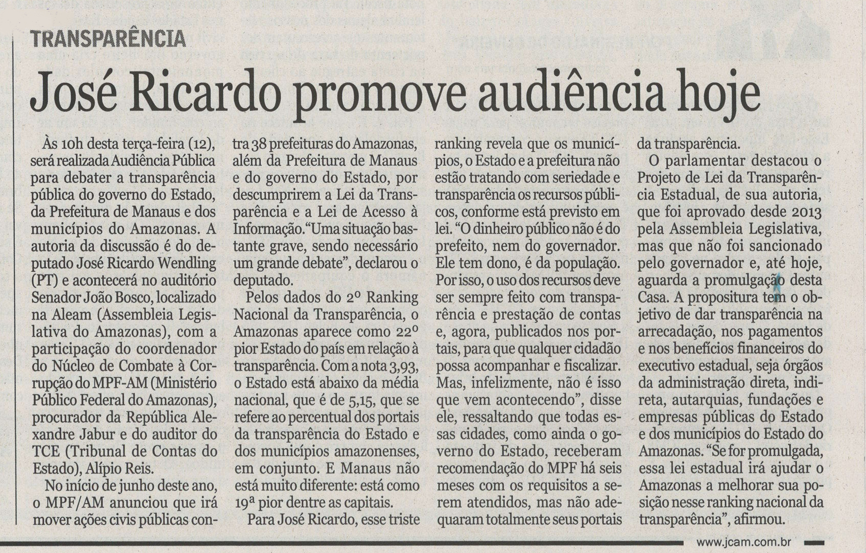José Ricardo promove audiência hoje