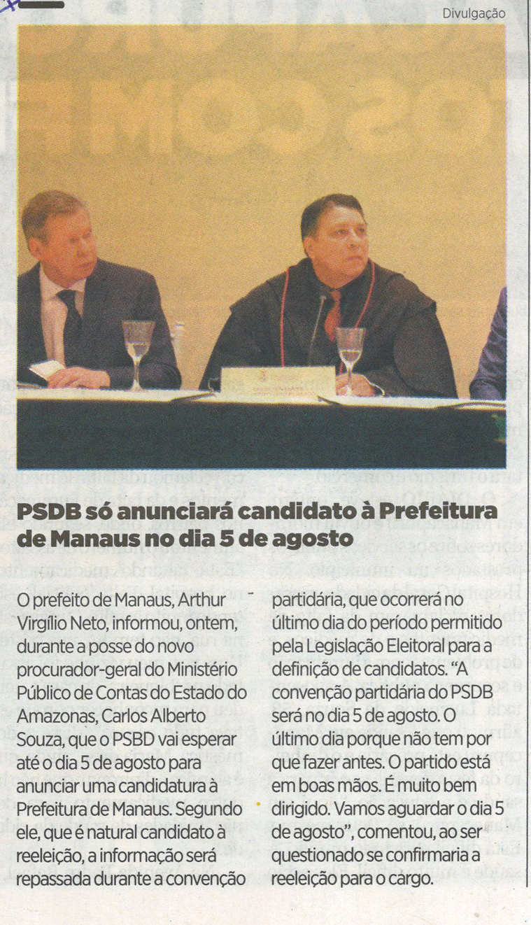PSDB só anunciará candidato à Prefeitura de Manaus no dia 5 de agosto
