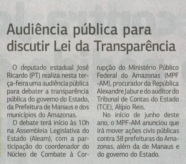 Audiência pública para discutir lei da transparêcia