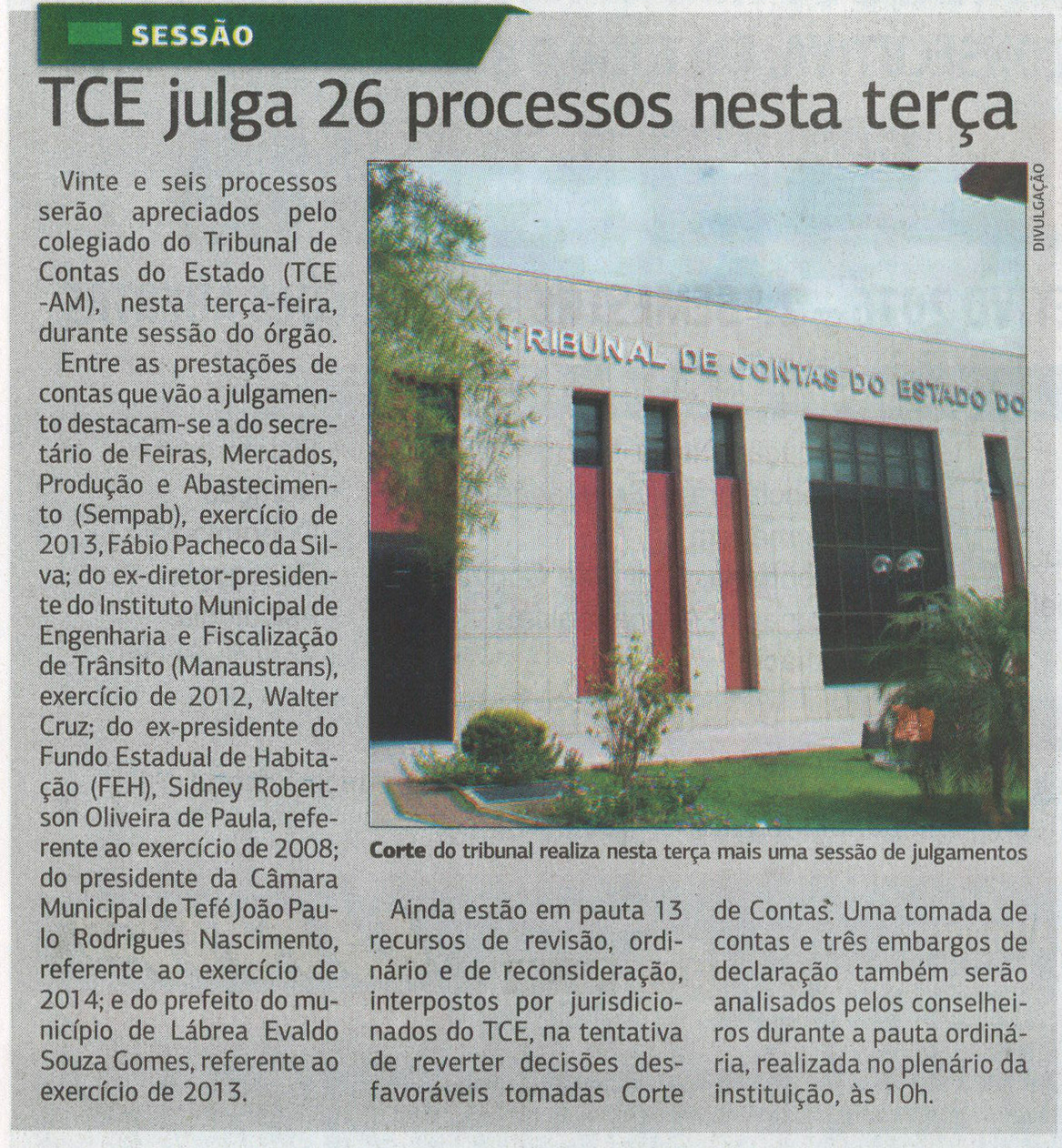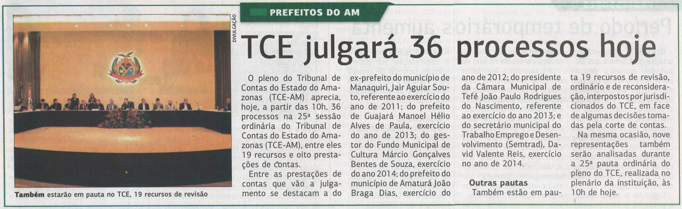 TCE julgará 36 processos hoje
