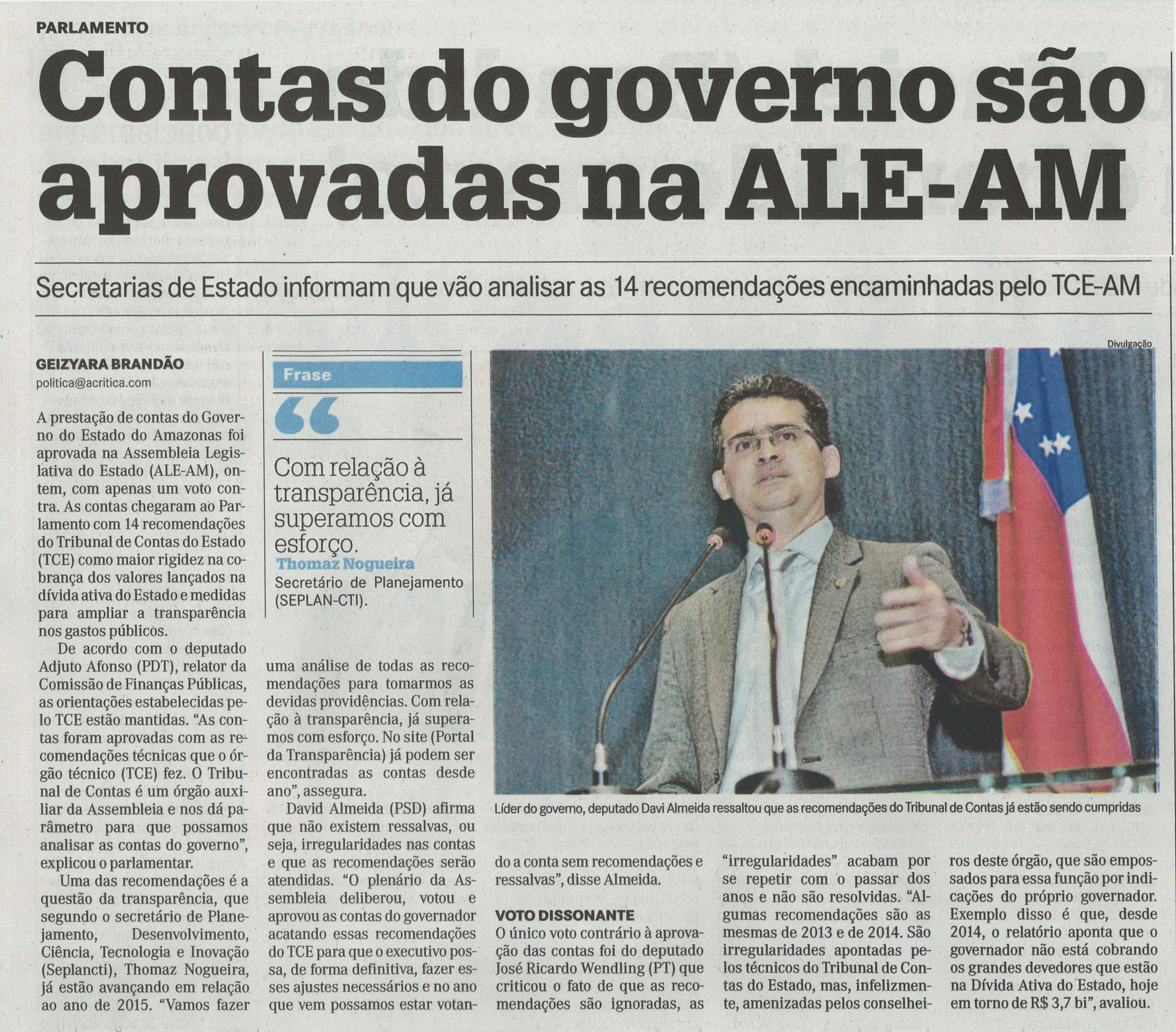 Contas do governo são aprovadas na ALE-AM