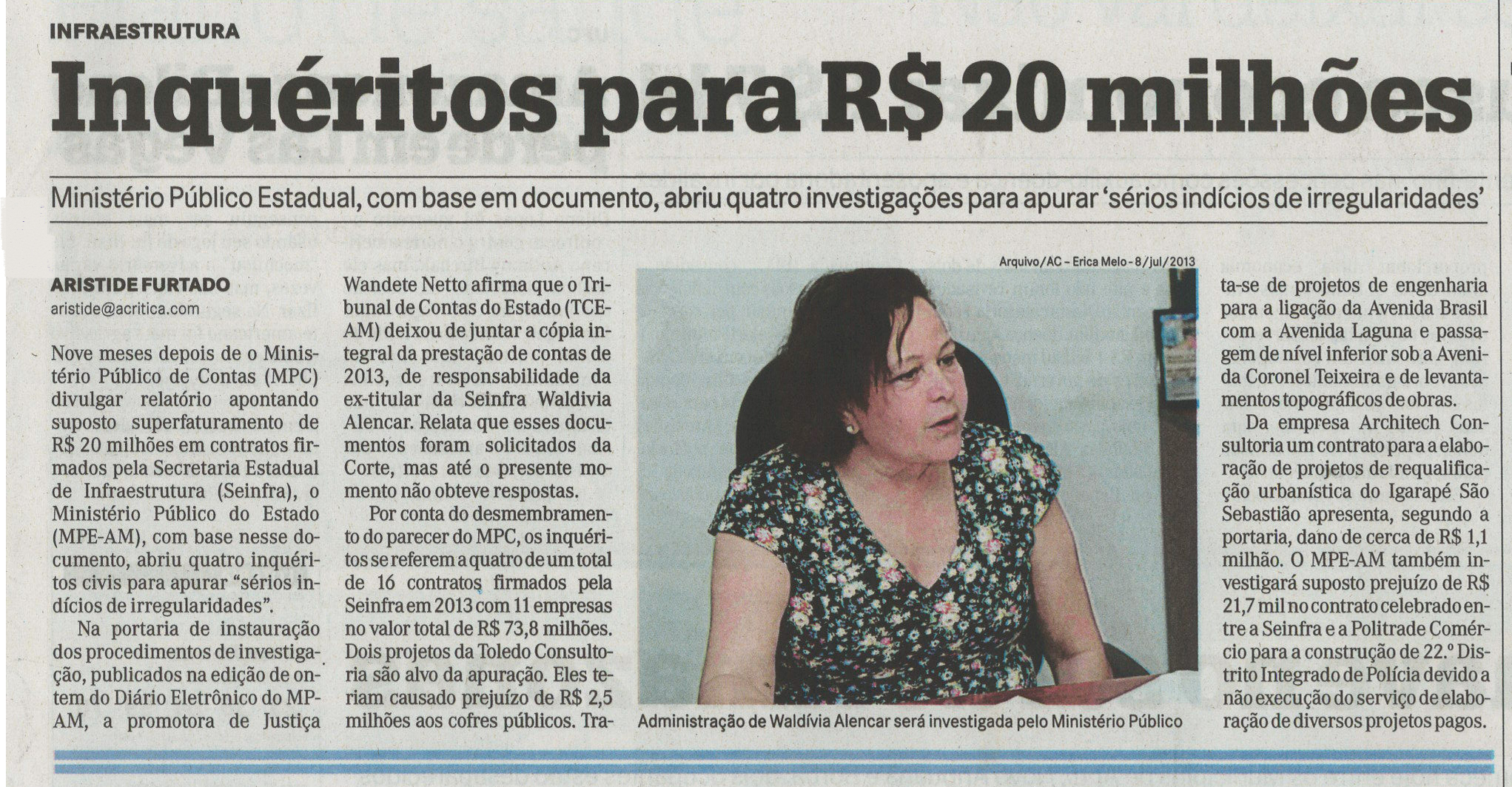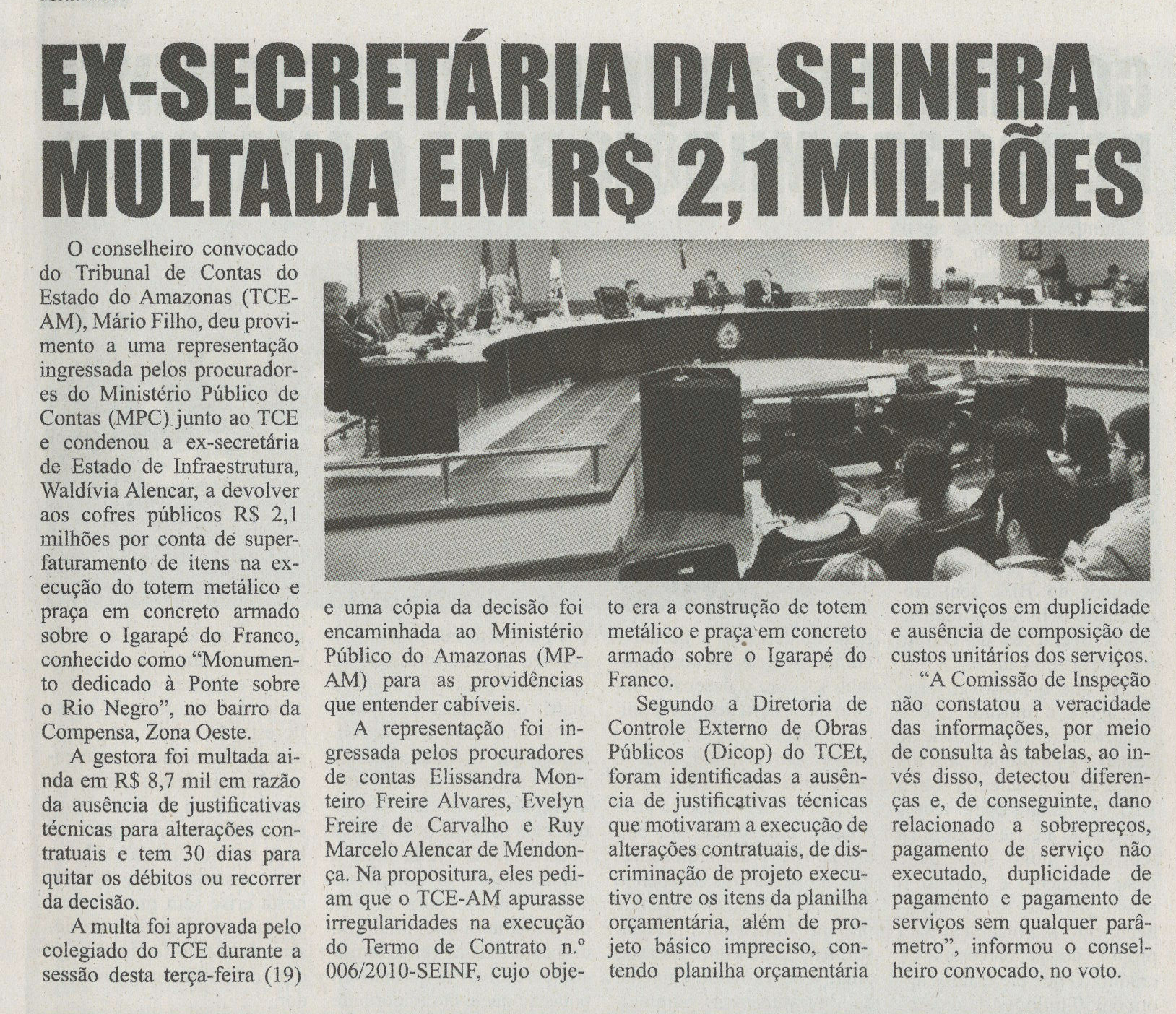 Ex- Secretária da Seinfra Multada em R$ 2,1 Milhões