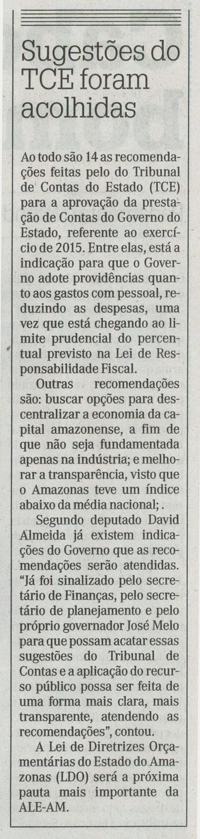 Sugestões do TCE foram acolhidas