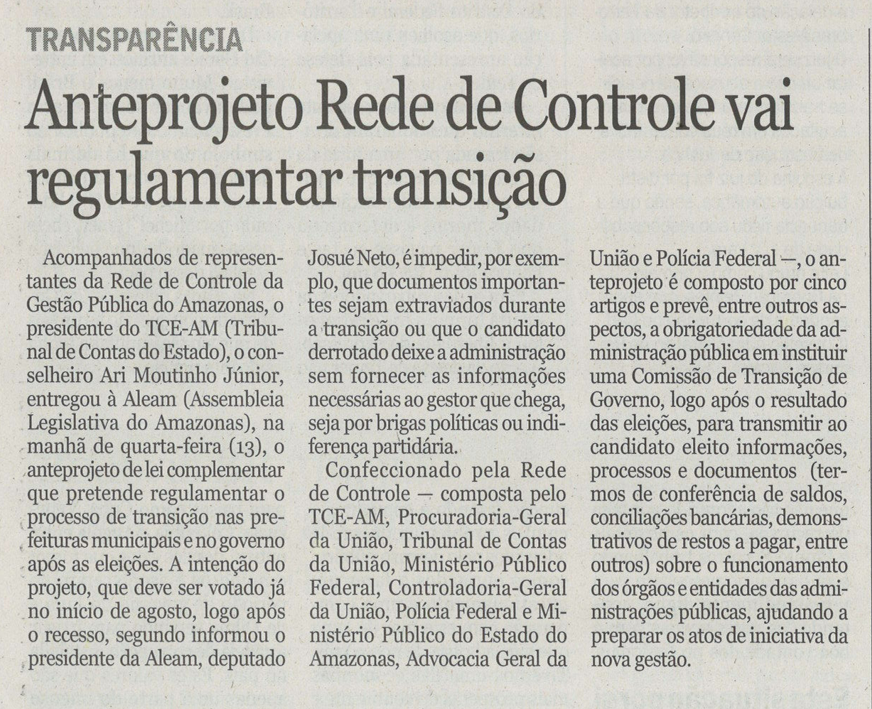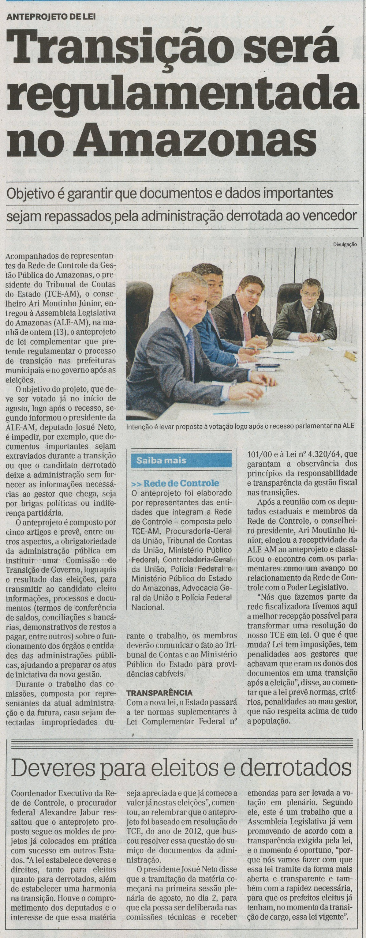 Transição será regulamento no Amazonas
