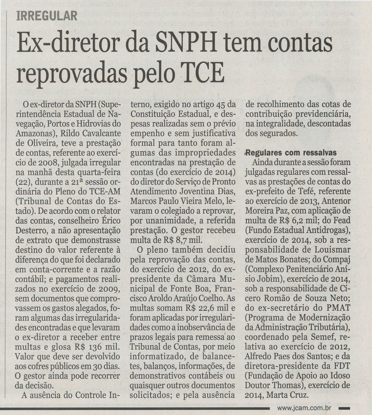 Ex-diretor da SNPH tem contas reprovadas pelo TCE