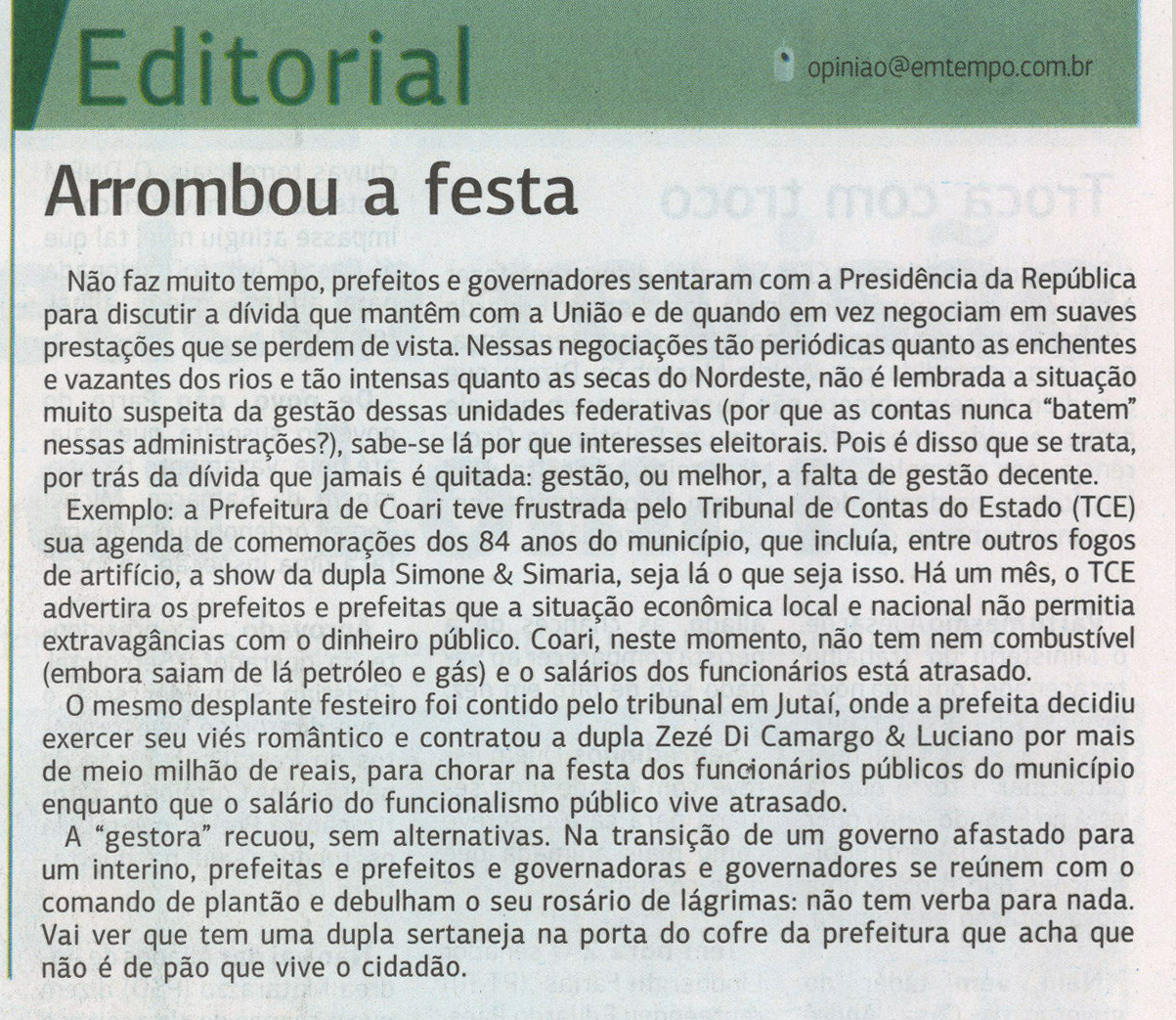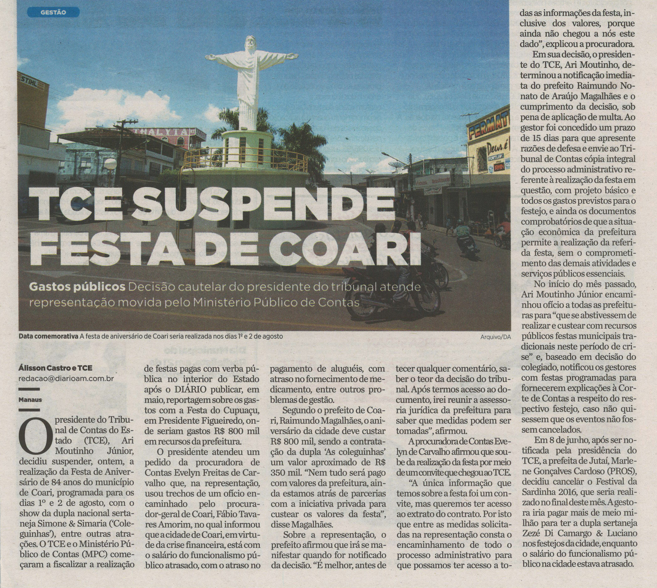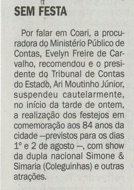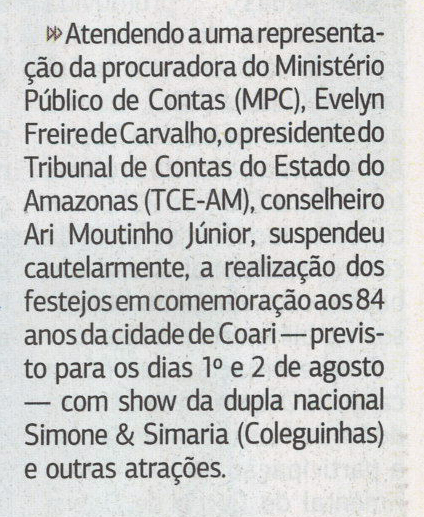 TCE suspende festa em Coari