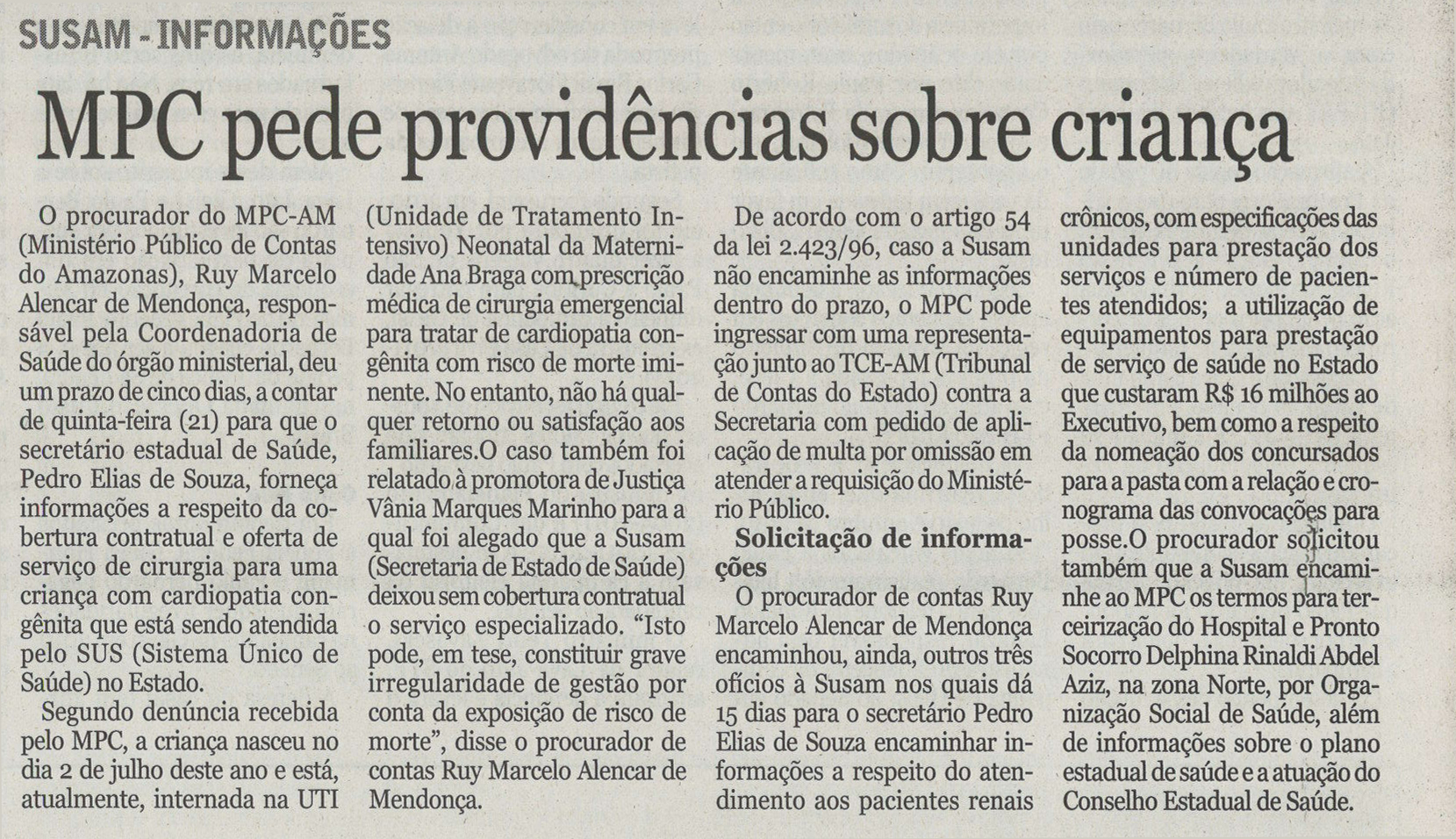 MPC pede providências sobre criança