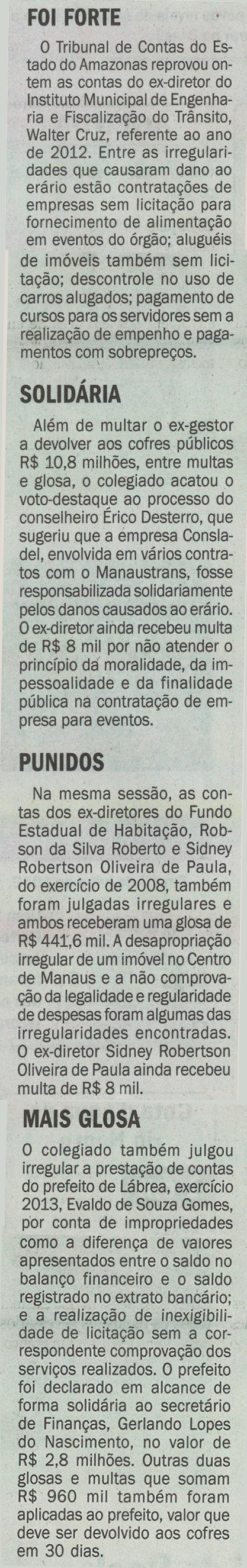 Foi forte, Solídaria, Punidos, Mais glosa