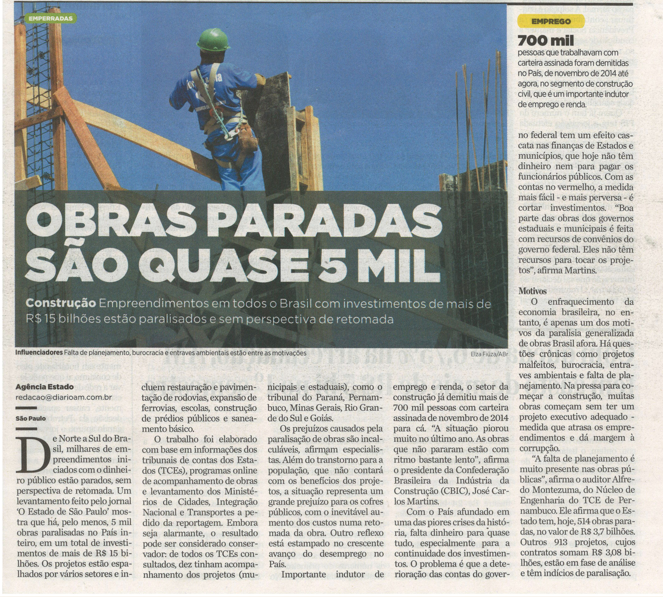 Obras paradas são quase 5 MIL