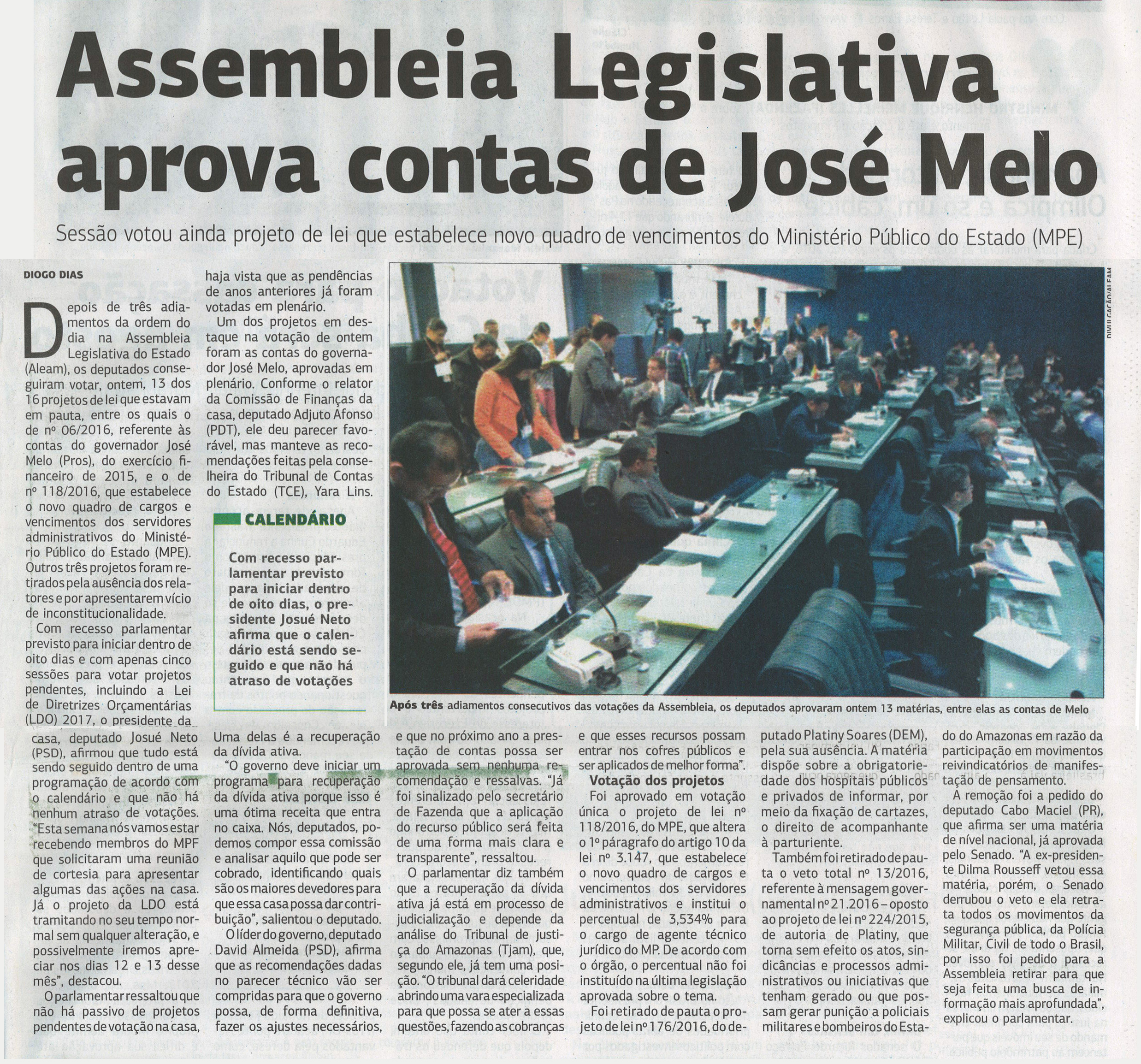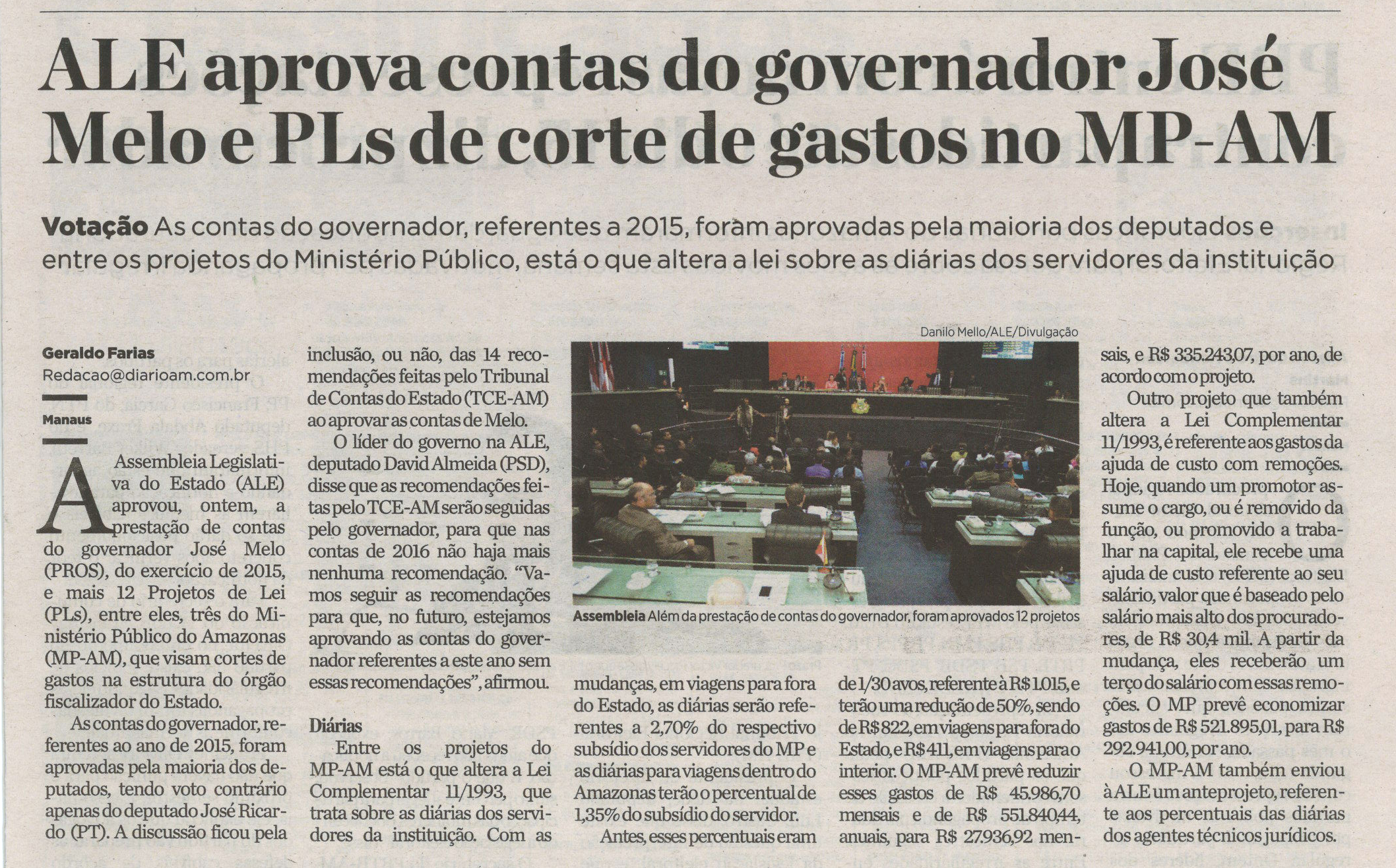 ALE aprova contas do governador José Melo e PLs de corte de gastos no MP-AM