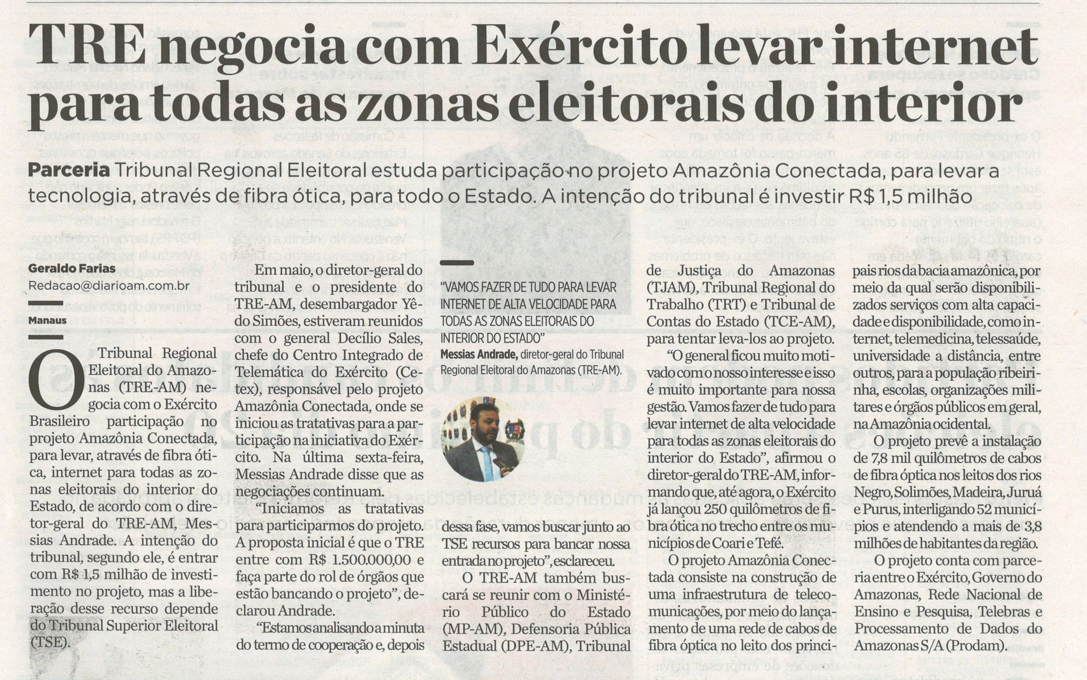 TRE negocia com exército levar internet para todas as zonas eleitorais do interior