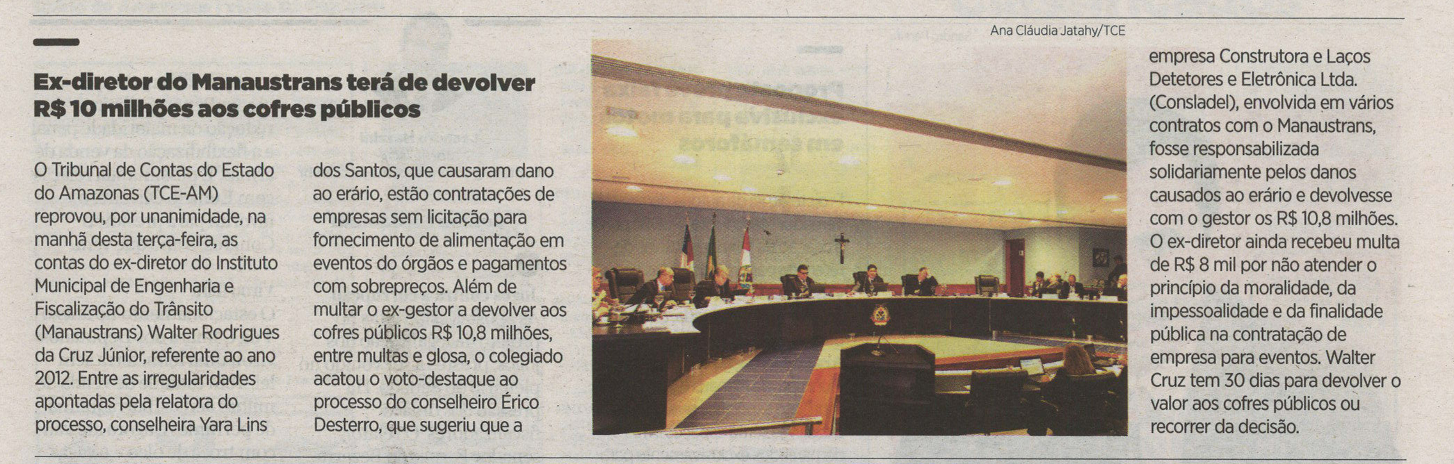 Ex-Diretor do Manaustrans terá que devolver R$ 10 milhões
