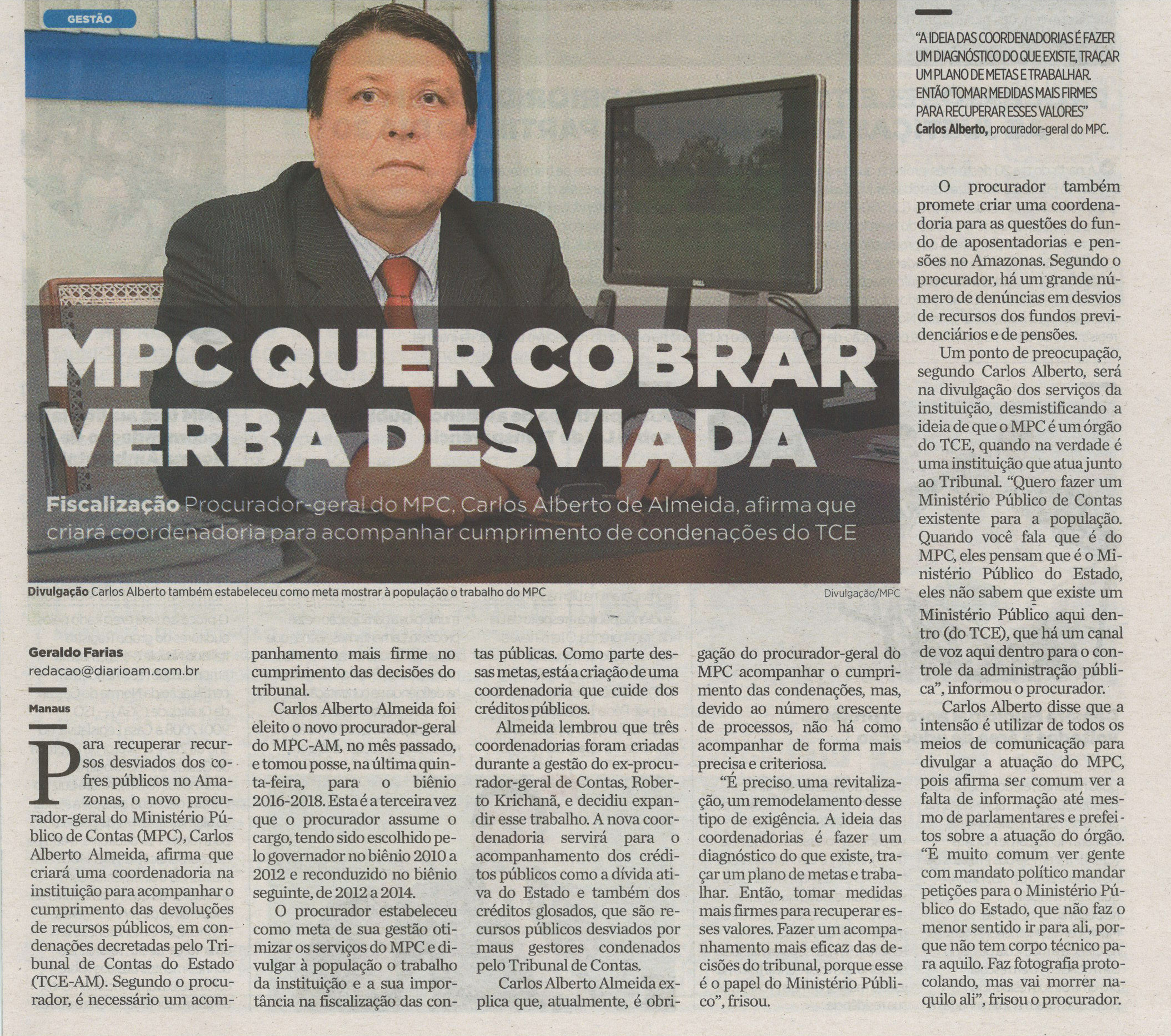 MPC quer cobrar verba desviada