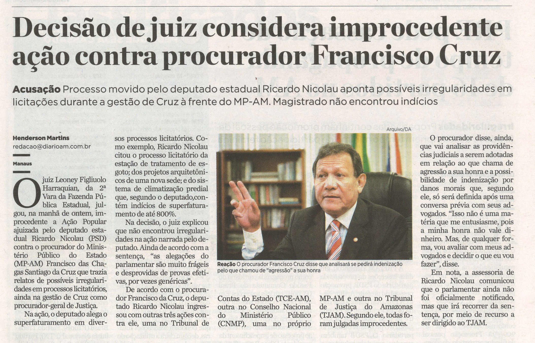 Decisão de juiz considera improcedente ação contra procurado Francisco Cruz