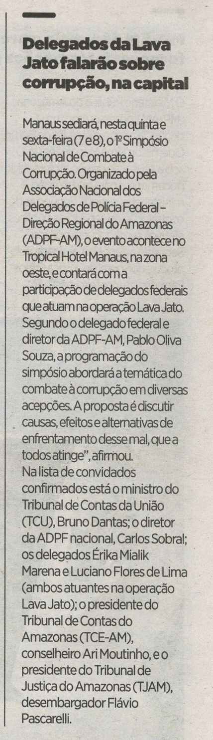 Delegados da Lava Jato falarão sobre corrupção, na capital