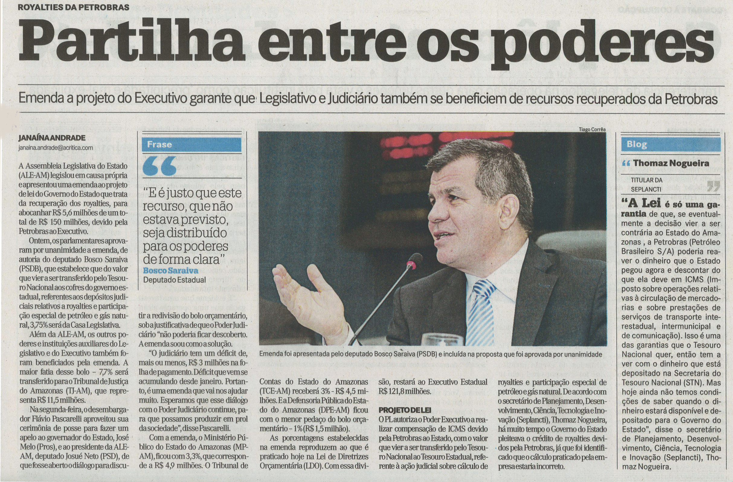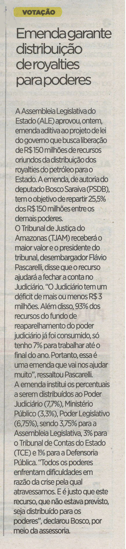 Emenda garante distribuição de royalties para poderes