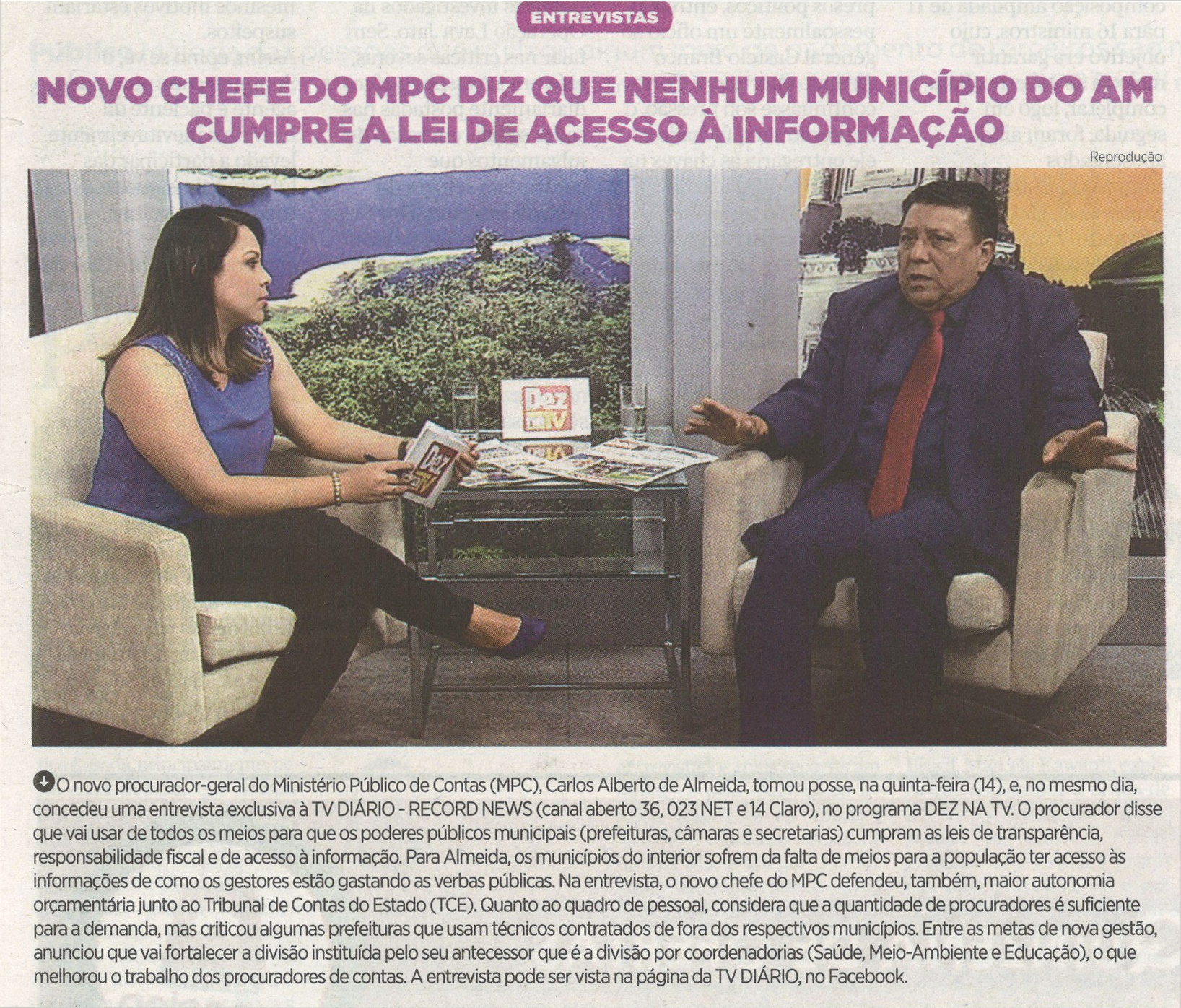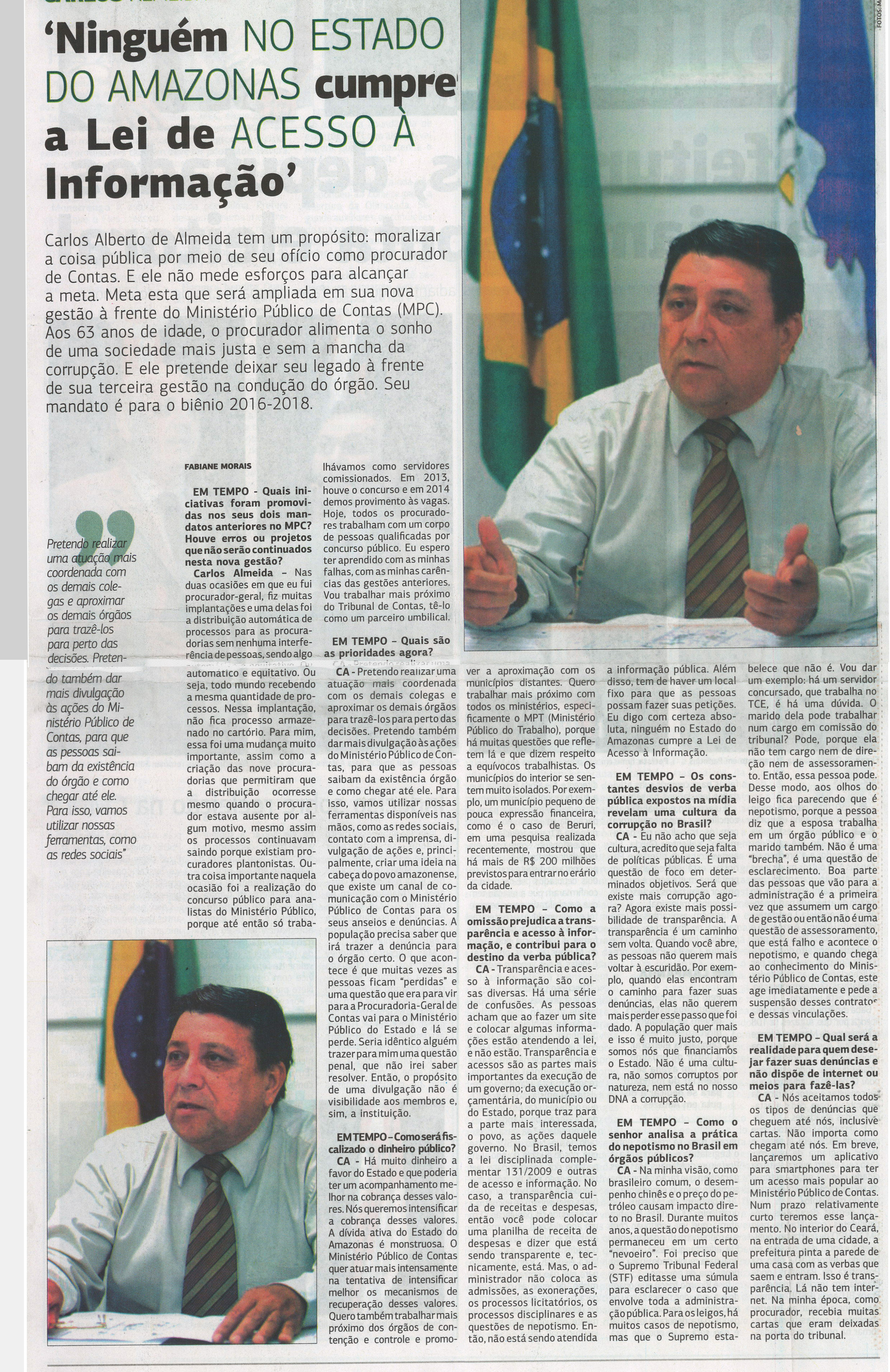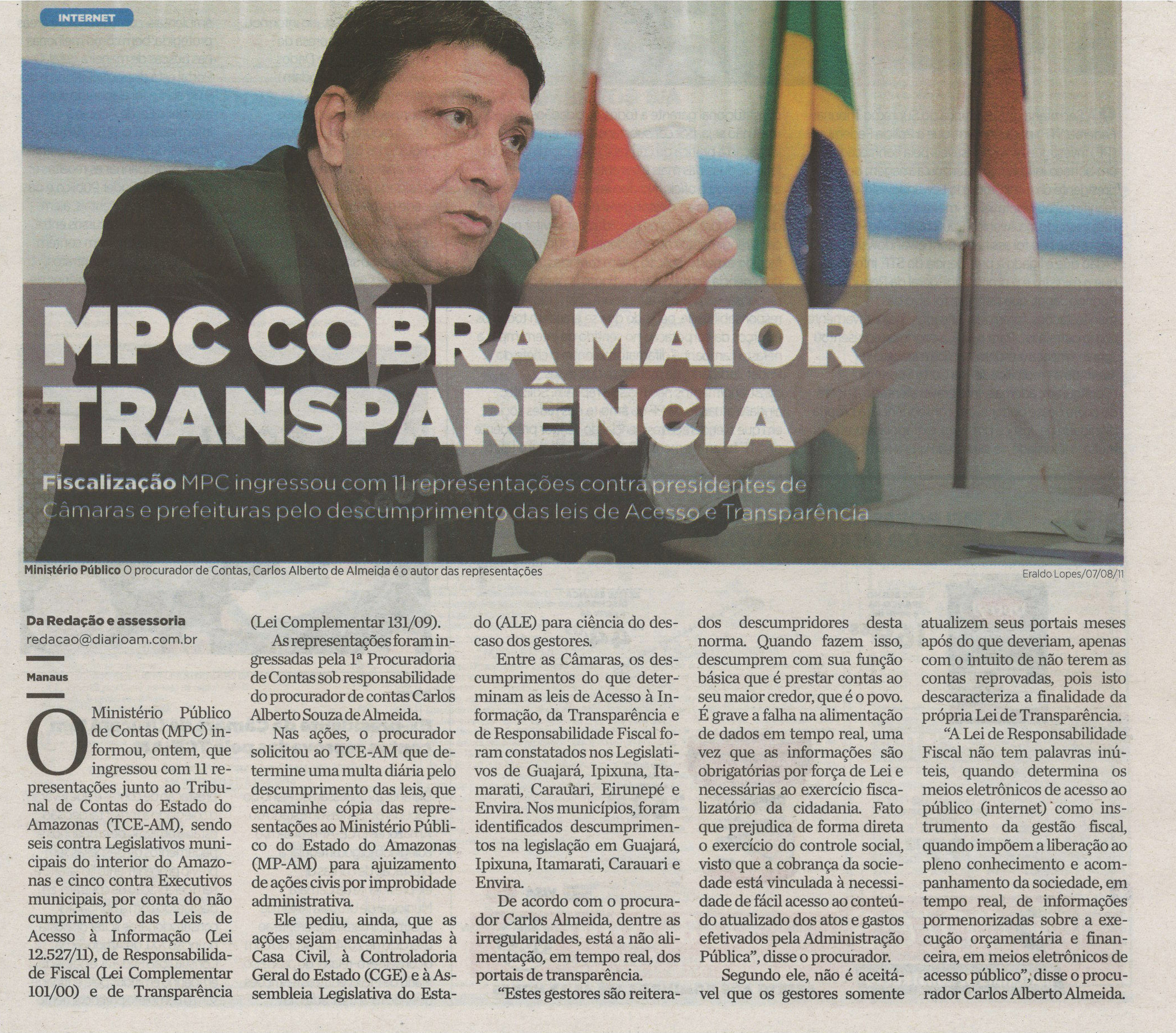 Novo Chefe do MPC diz que nenhum município do AM cumpre a lei de acesso à informação
