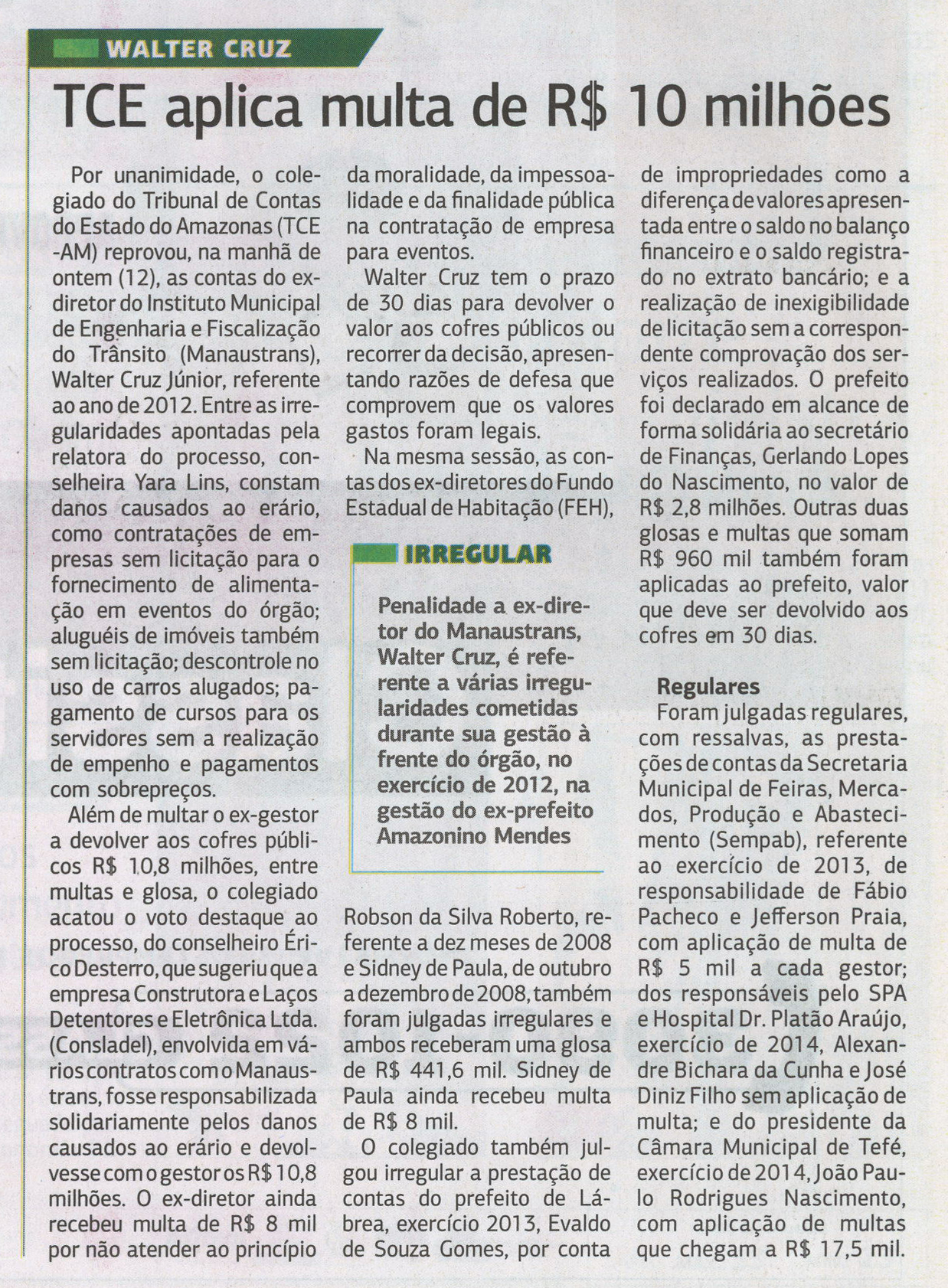 TCE aplica multa de R$ 10 milhões