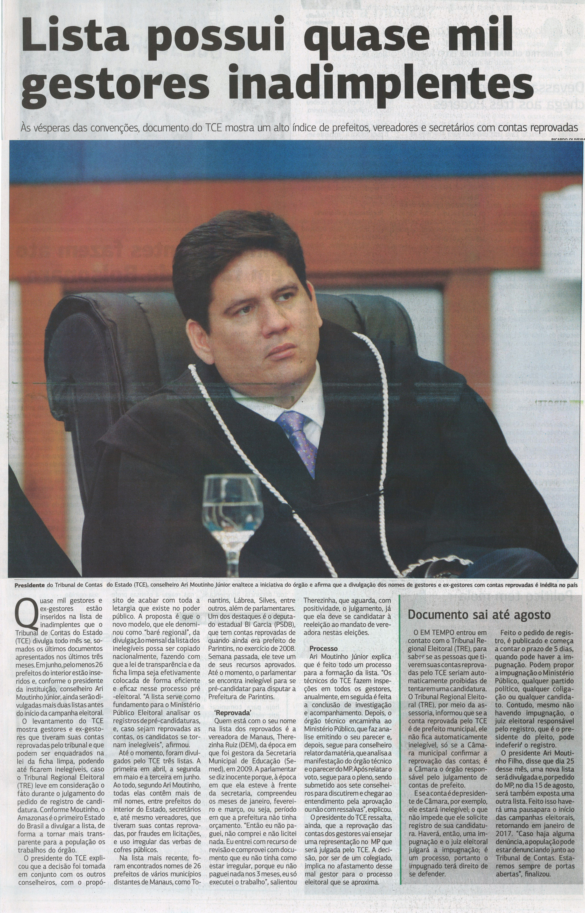 Lista possui quase mil gestores inadimplentes