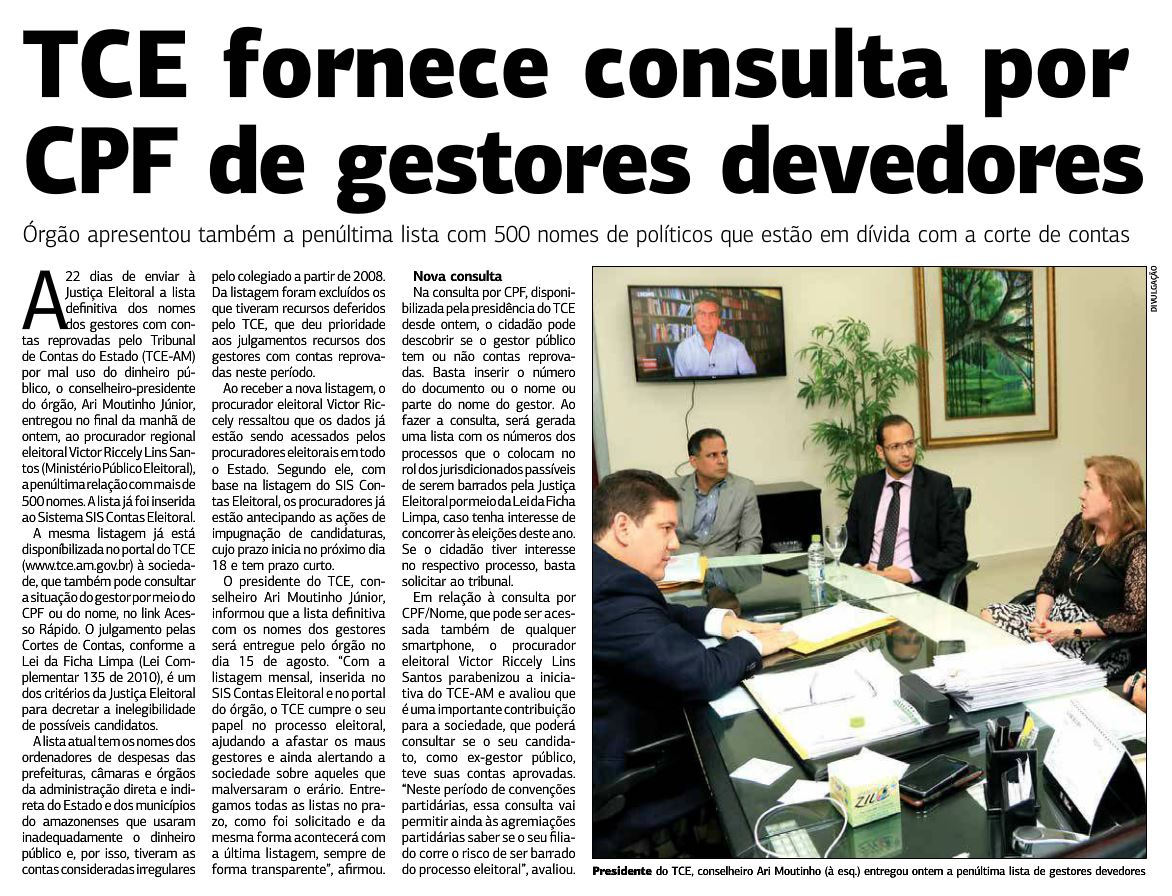TCE fornece consulta por CPF de gestores devedores