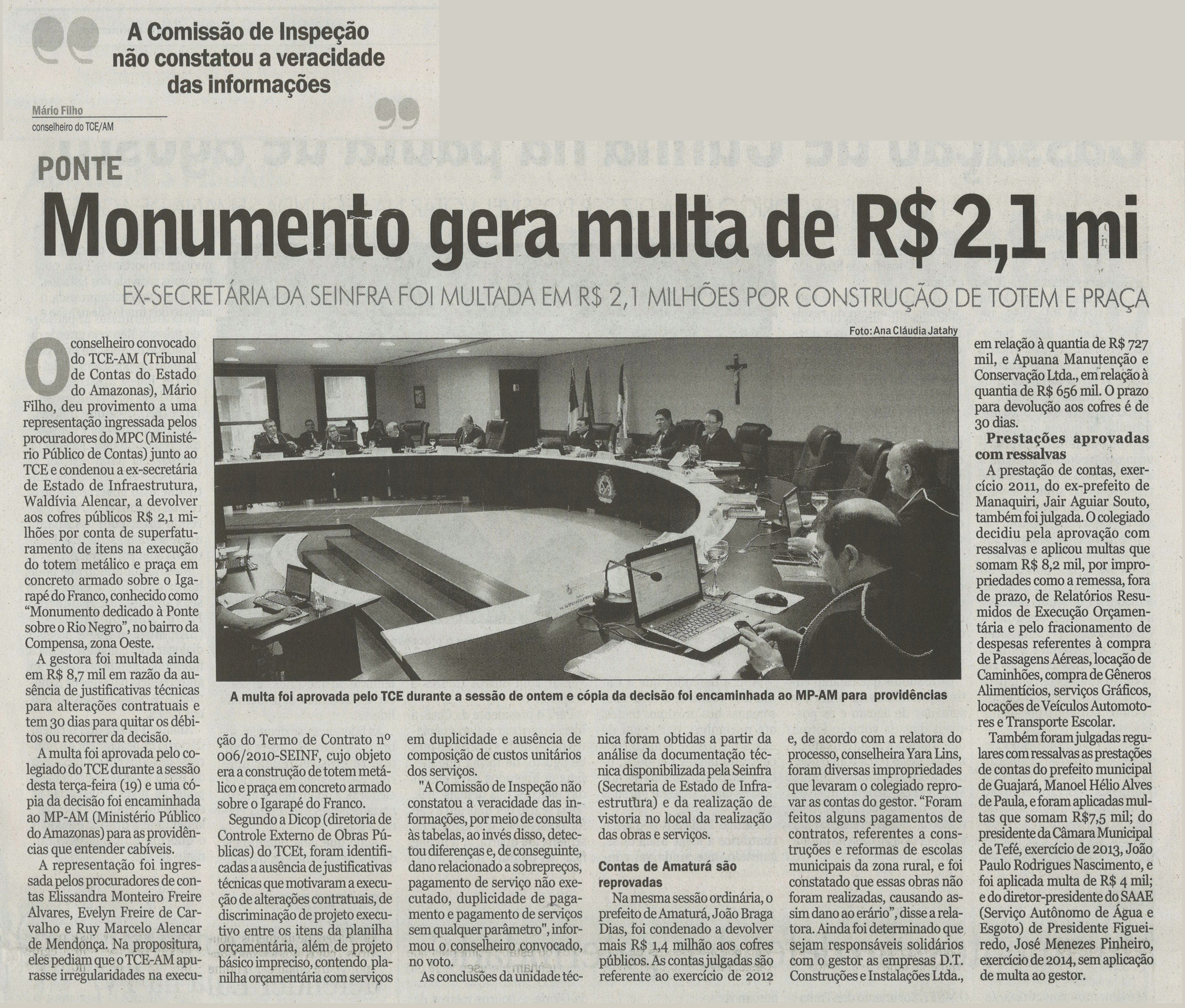Monumento gera multa de R$ 2,1 mi