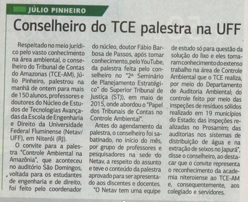 30/09/16 Em Tempo Conselheiro do TCE palestra na UFF