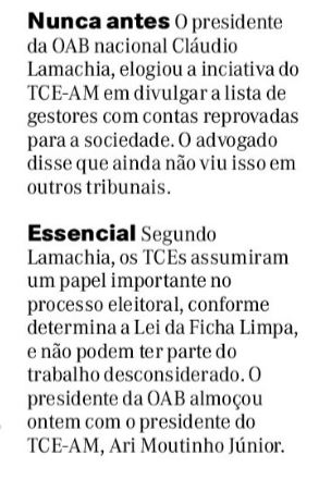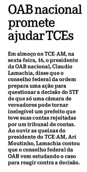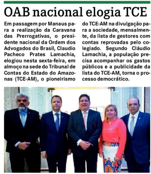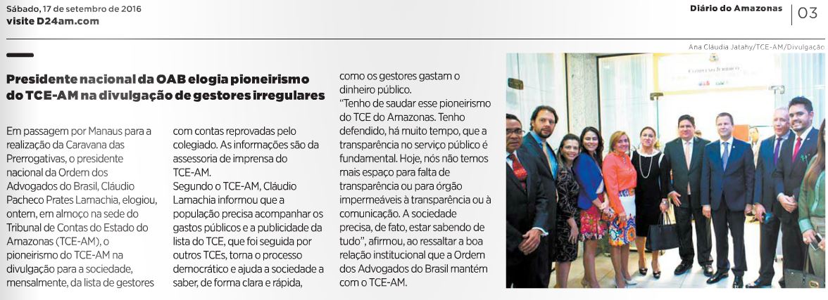 17/09/16 Diário do Amazonas Presidente nacional da OAB elogia pionerismo do TCE-AM na divulgação de gestores irregulares
