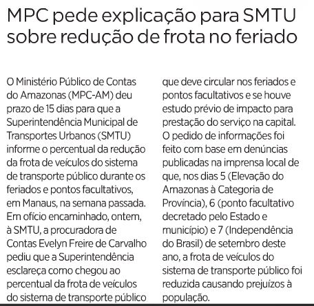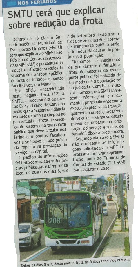 13/09/16 Diário do Amazonas MPC pede explicação para SMTU sobre redução de frota no feriado