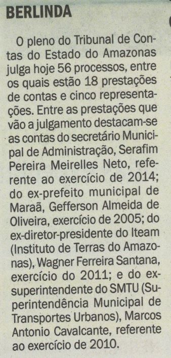 13/09/16 Diário do Amazonas TCE-AM julga 56 processos nesta terça-feira