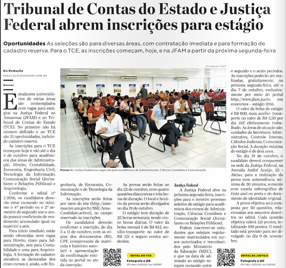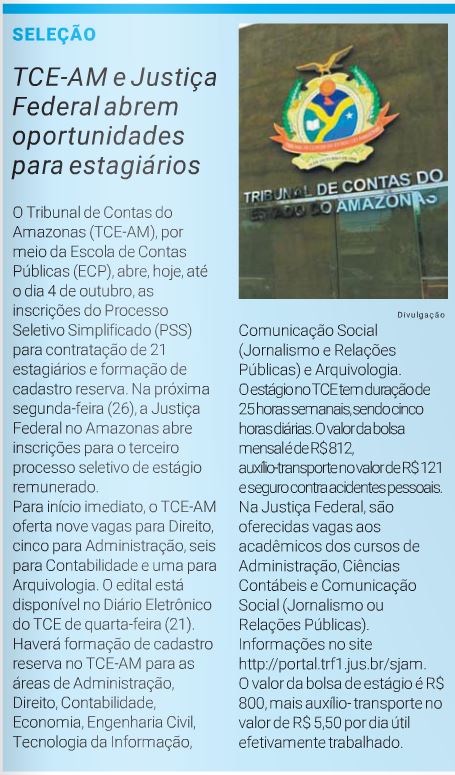23/09/16 Agora TCE-AM e Justiça Federal abrem oportunidades para estagiários