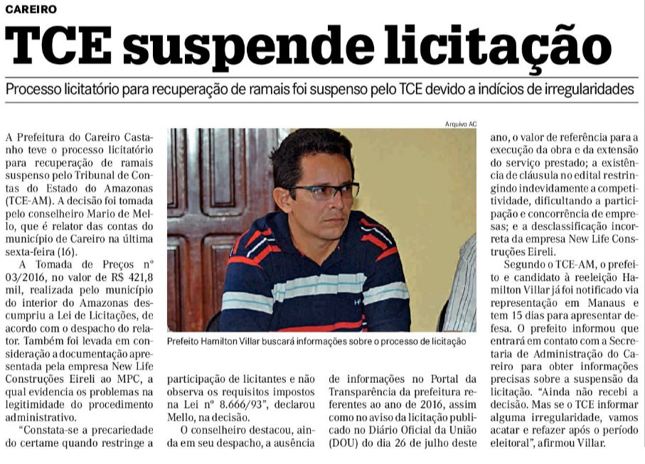 21/09/16 Diário do Amazonas Ainda a Seinfra 1 e 2