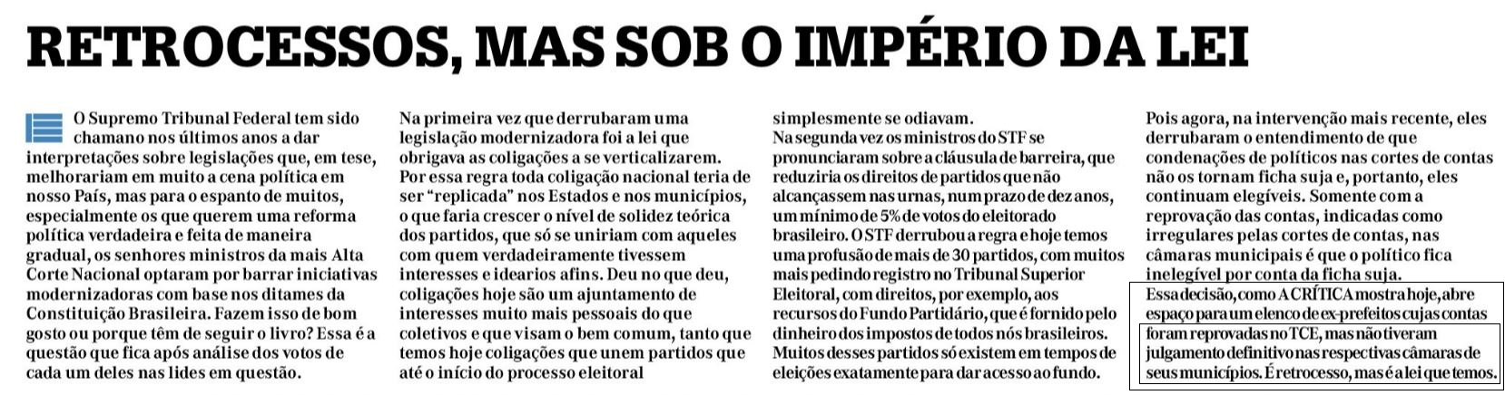 11/09/16 A Crítica Retrocessos, mas sob o império da lei