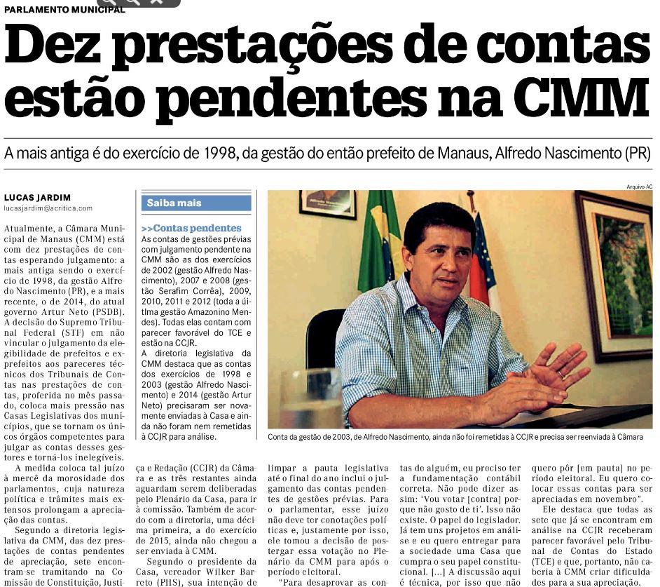 15/09/16 A Crítica Dez prestações de contas estão pendentes na CMM