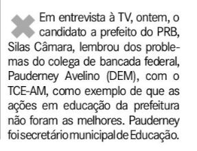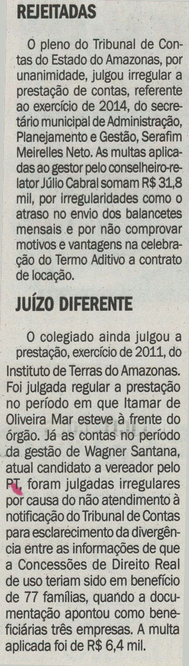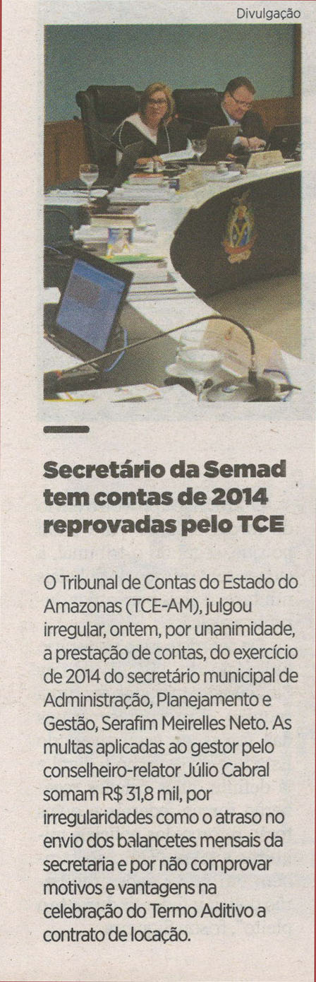 14/09/16 Diário do Amazonas Secretário da Semad tem contas de 2014 reprovadas pelo TCE