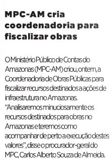 30/09/16 Diário do Amazonas MPC-AM cria coordenadoria para fiscalizar obras