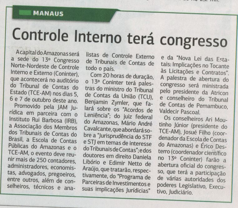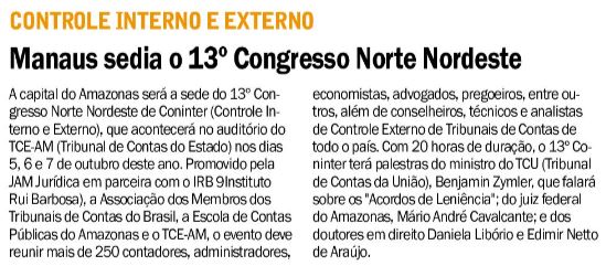 16/09/16 Jornal do Commercio Manaus sedia o 13º Congresso Norte Nordeste