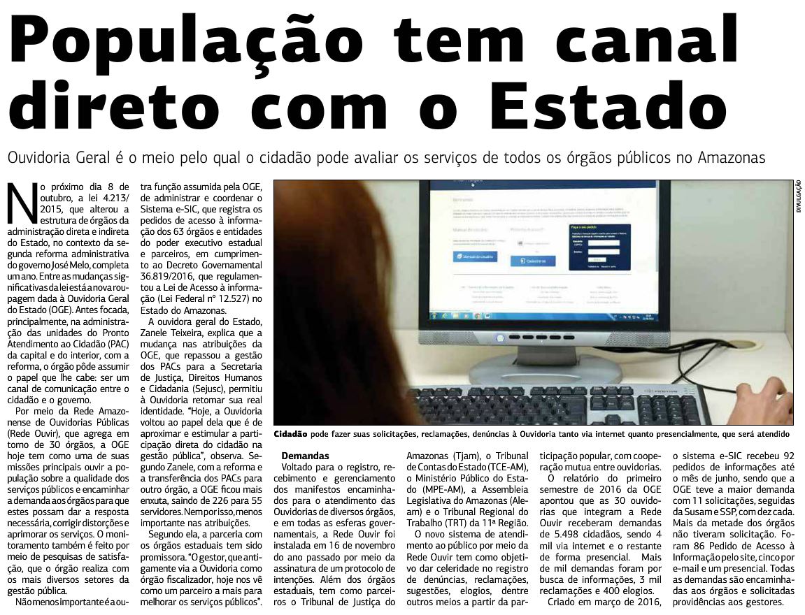 25/09/16 Em Tempo População tem canal direto com o Estado