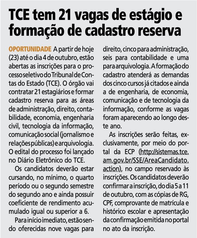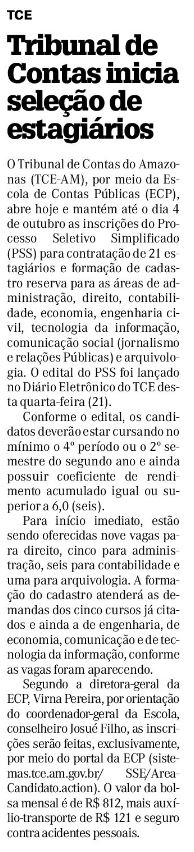 23/09/16 A Crítica Tribunal de Contas inicia seleção de estagíarios
