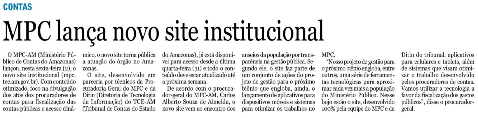 03/09/16 Diário do Amazonas Misitério Público de Contas lança novo site