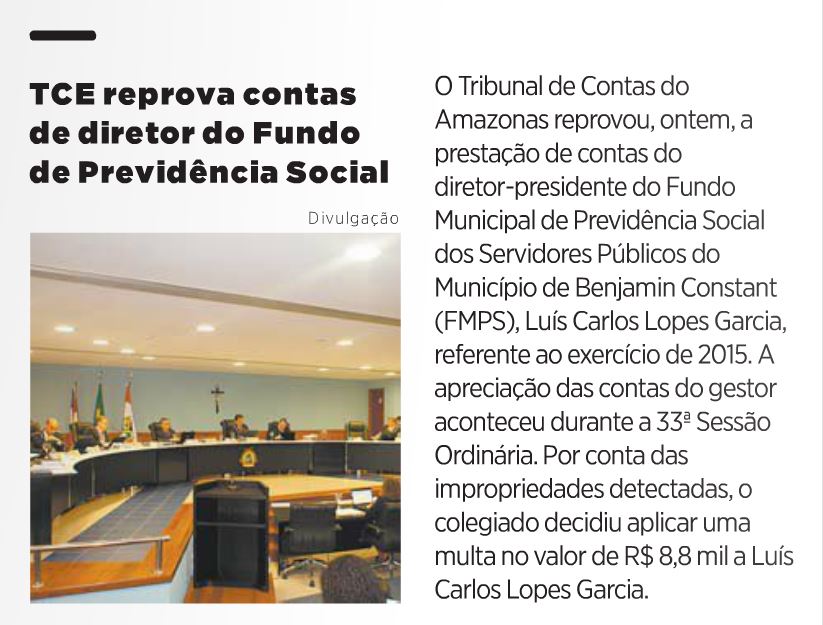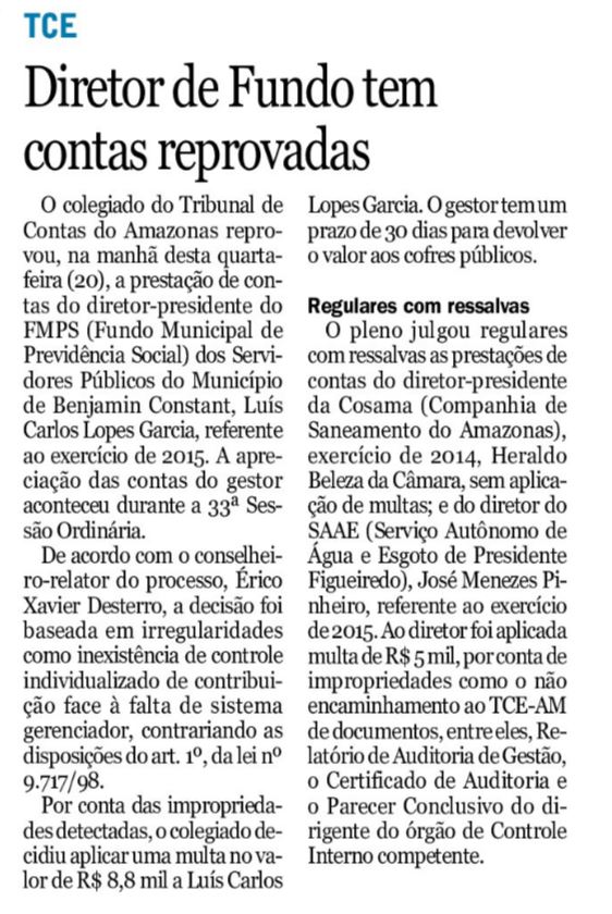 21/09/16 Diário do Amazonas TCE reprova contas de diretor do Fundo de Previdência Social