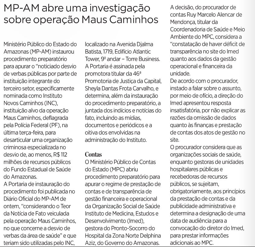 23/09/16 Diário do Amazonas MP-AM abre uma investigação sobre operação Maus Caminhos