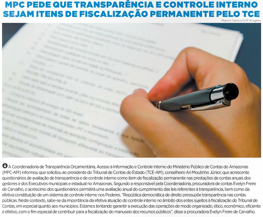 10/09/16 Diário do Amazonas MPC pede que transparência e controle interno sejam itens de fiscaliação permanente pelo TCE